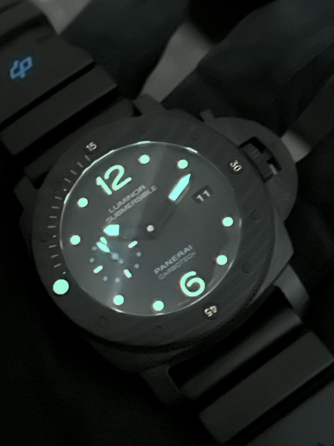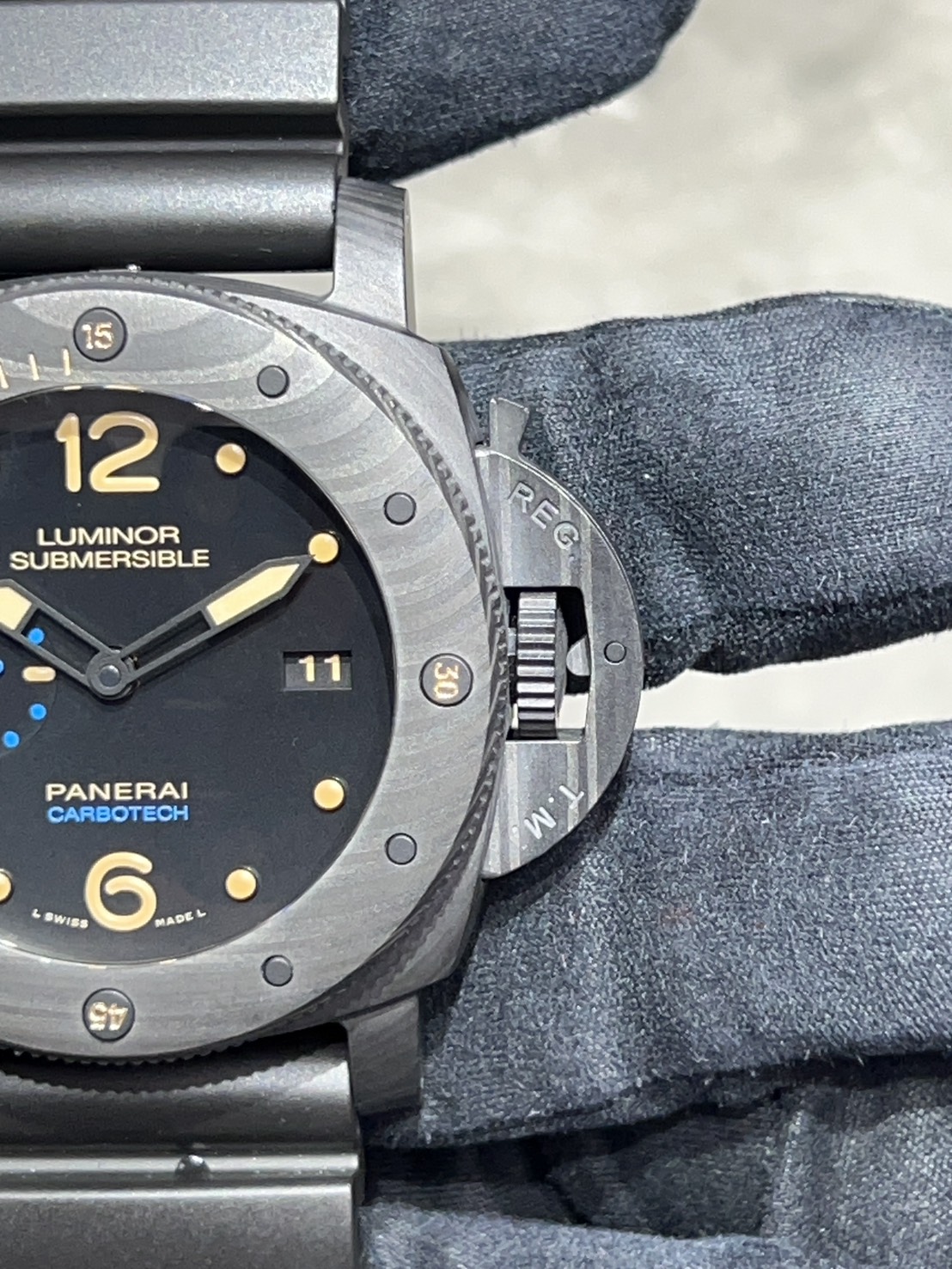 今回は軽量且つ丈夫なカーボン素材のパネライ ルミノール サブマーシブル 1950 カーボテック 3デイズが入荷致しました。