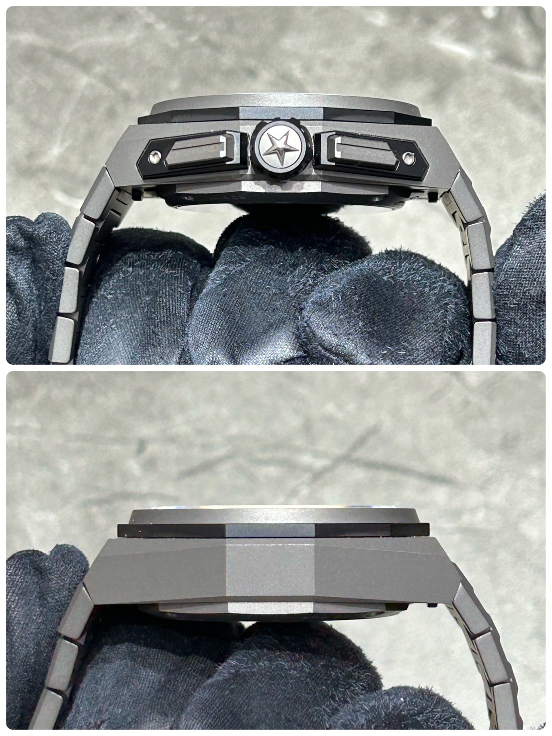 こちらのモデルは45㎜のマイクロブラスト仕上げチタン製となっており、非常にスポーティかつ屈強な雰囲気となっております。