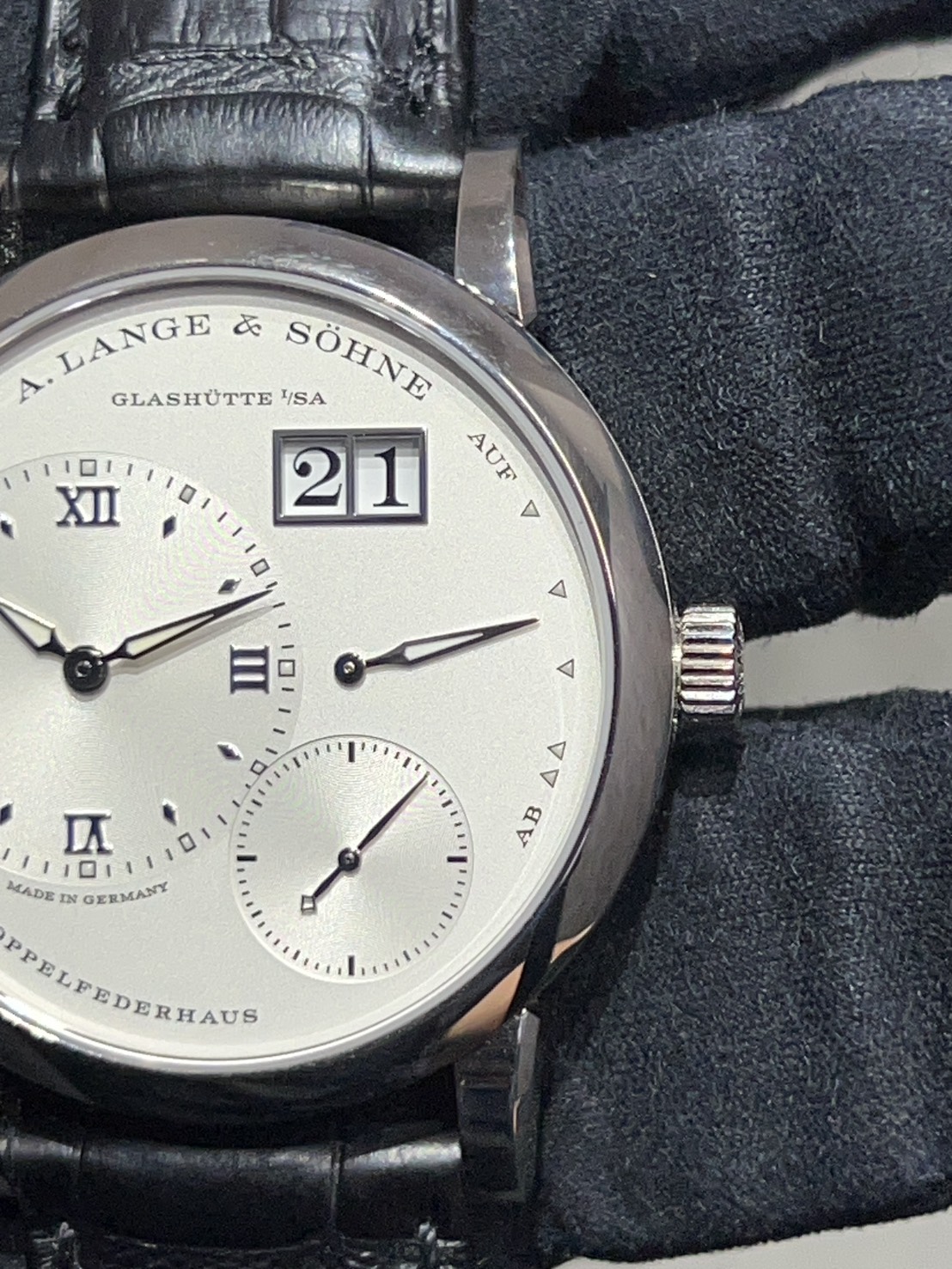 ホワイトゴールドにシルバー文字盤の非常にスタイリッシュなランゲ1が入荷致しました。