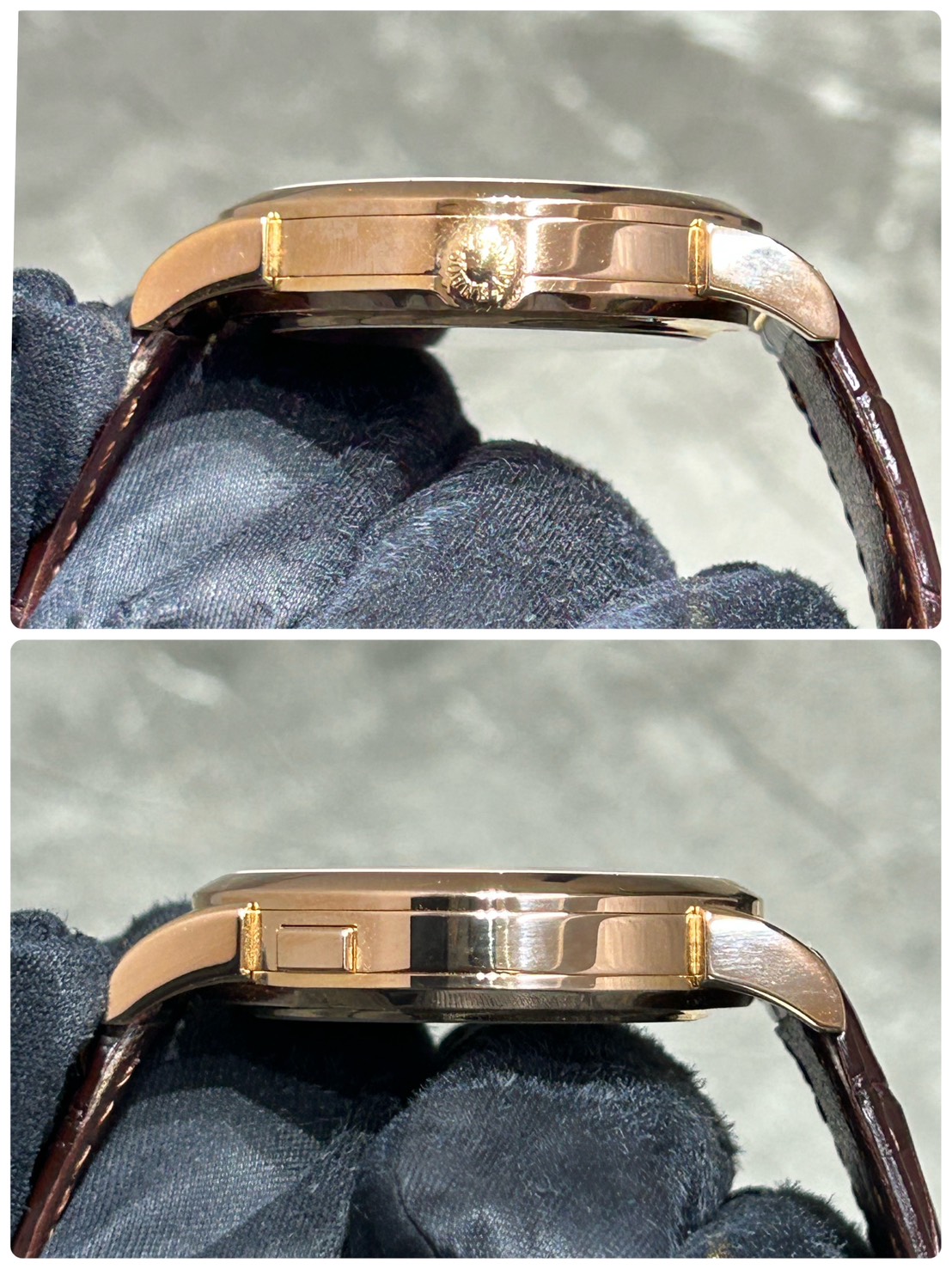 裏蓋からは手巻きキャリバーL901.0が確認でき表裏ともに美しいモデルで日付変更も10時側のプッシュボタンを押せば簡単に行えます。