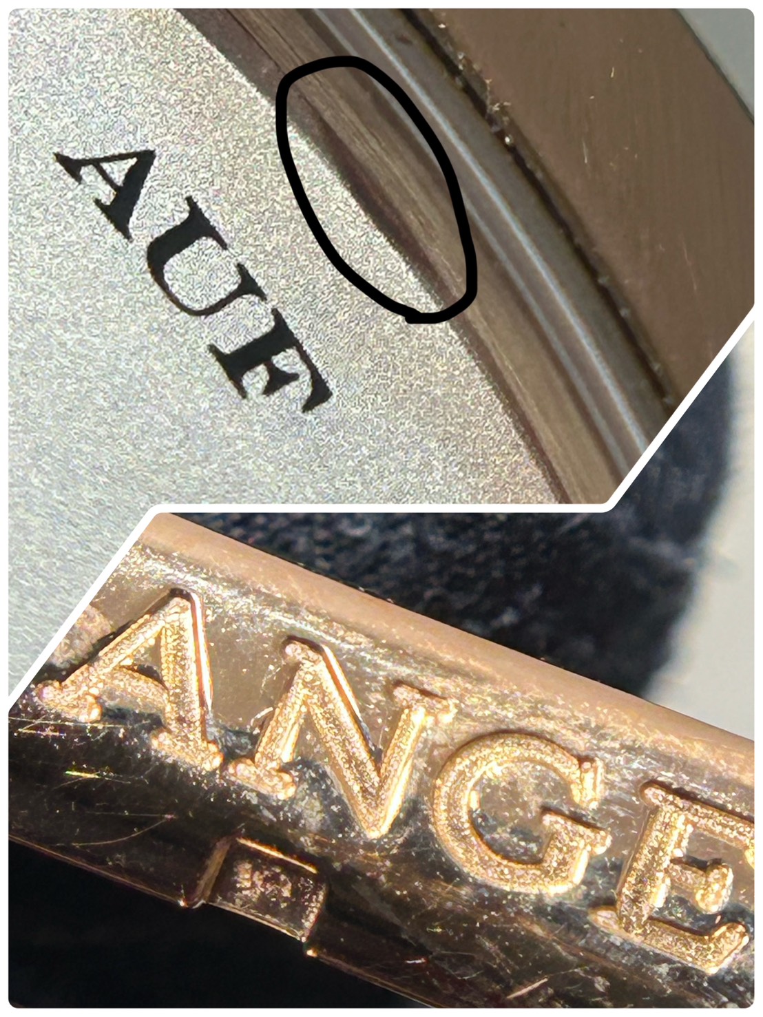 尾錠にスレ傷や文字盤に一部変色(最後の写真参照)はございますが光に当てたり注視して気づくレベルですので安心してご検討頂けますと幸いです。