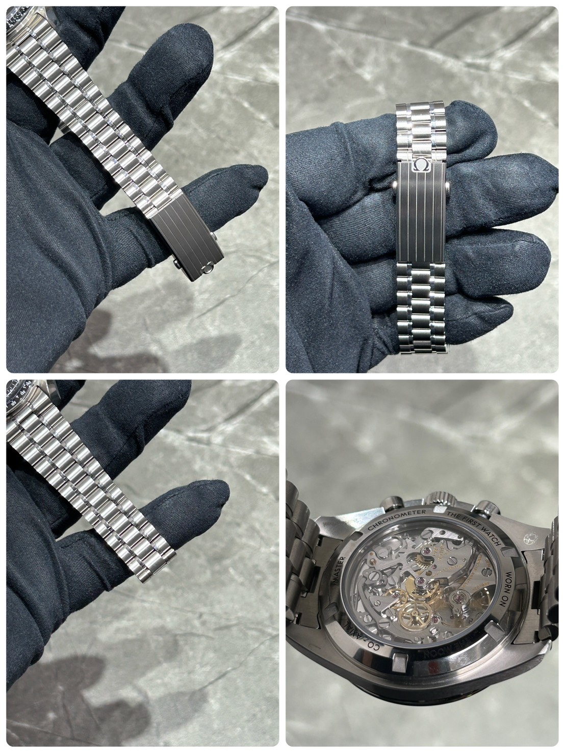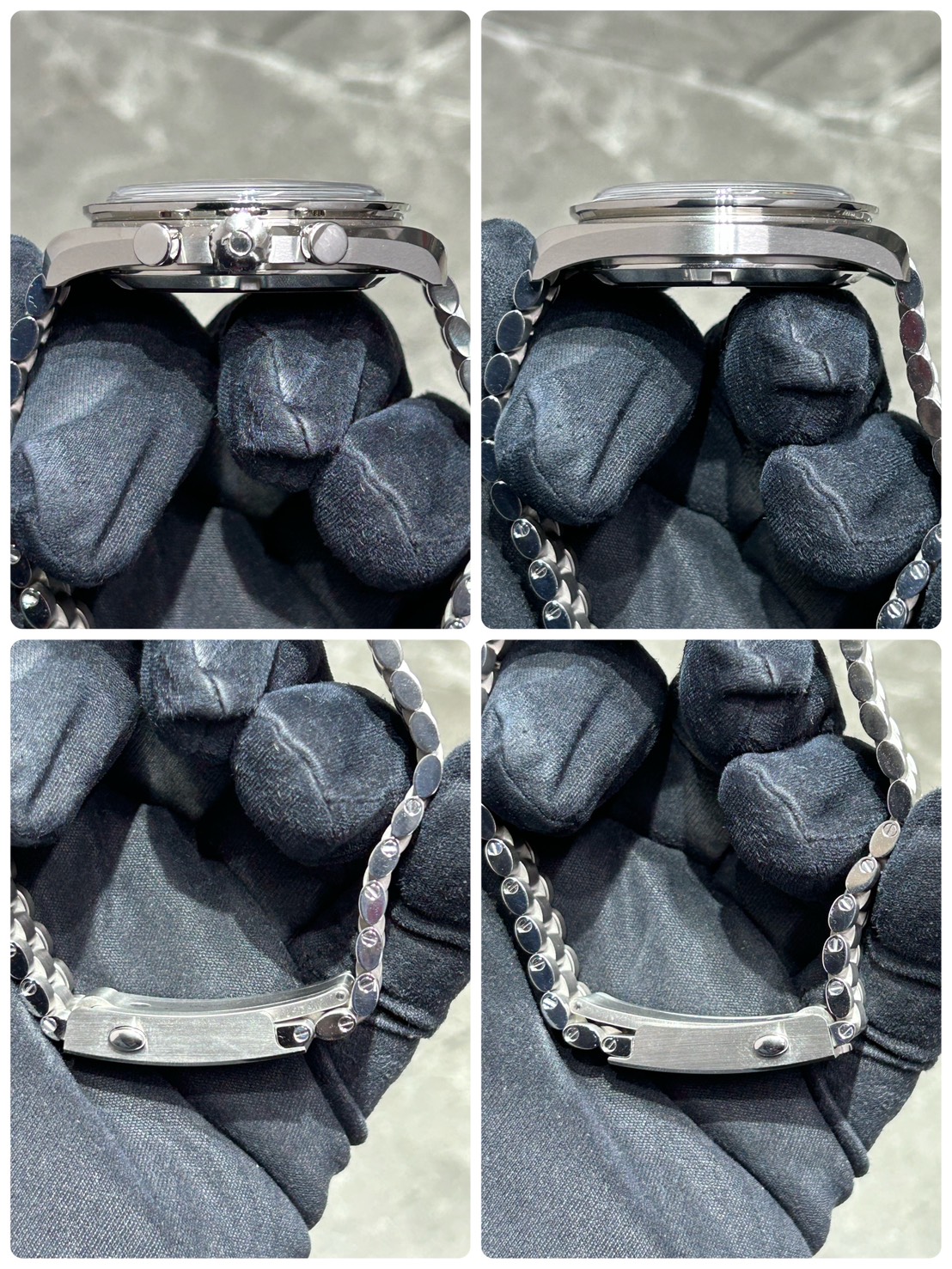 裏蓋からは手巻きキャリバー3861を鑑賞する事ができ、ポリッシュ&ブラッシュ仕上げのステンレスブレスはしなやかな付け心地となっております。