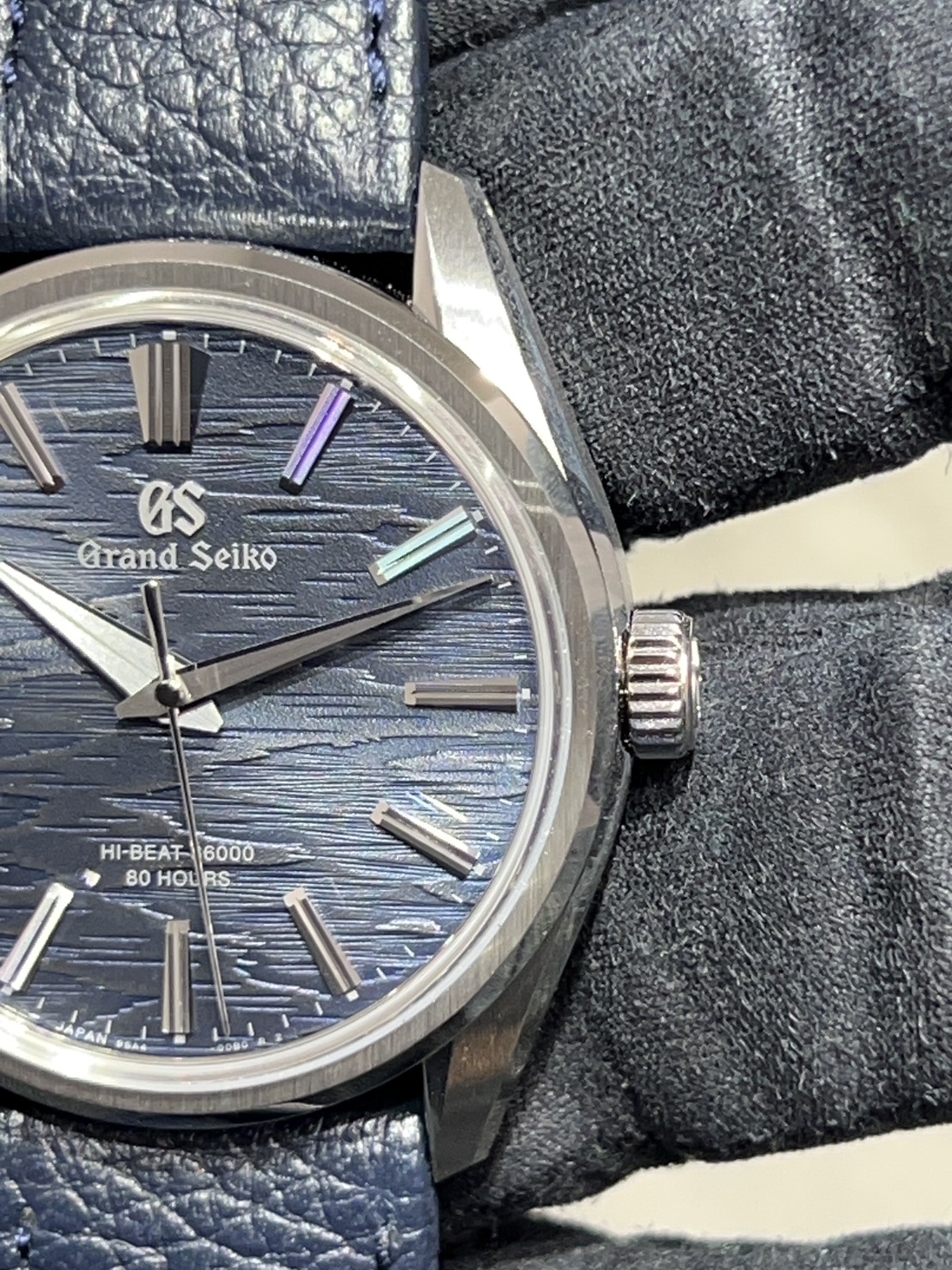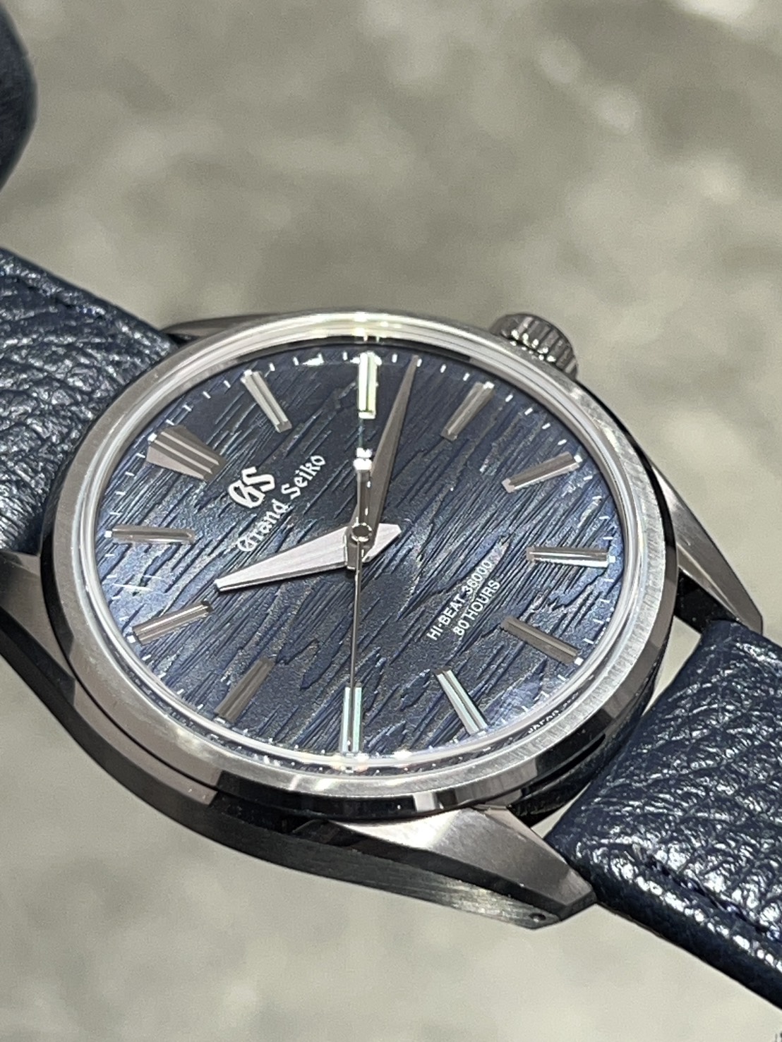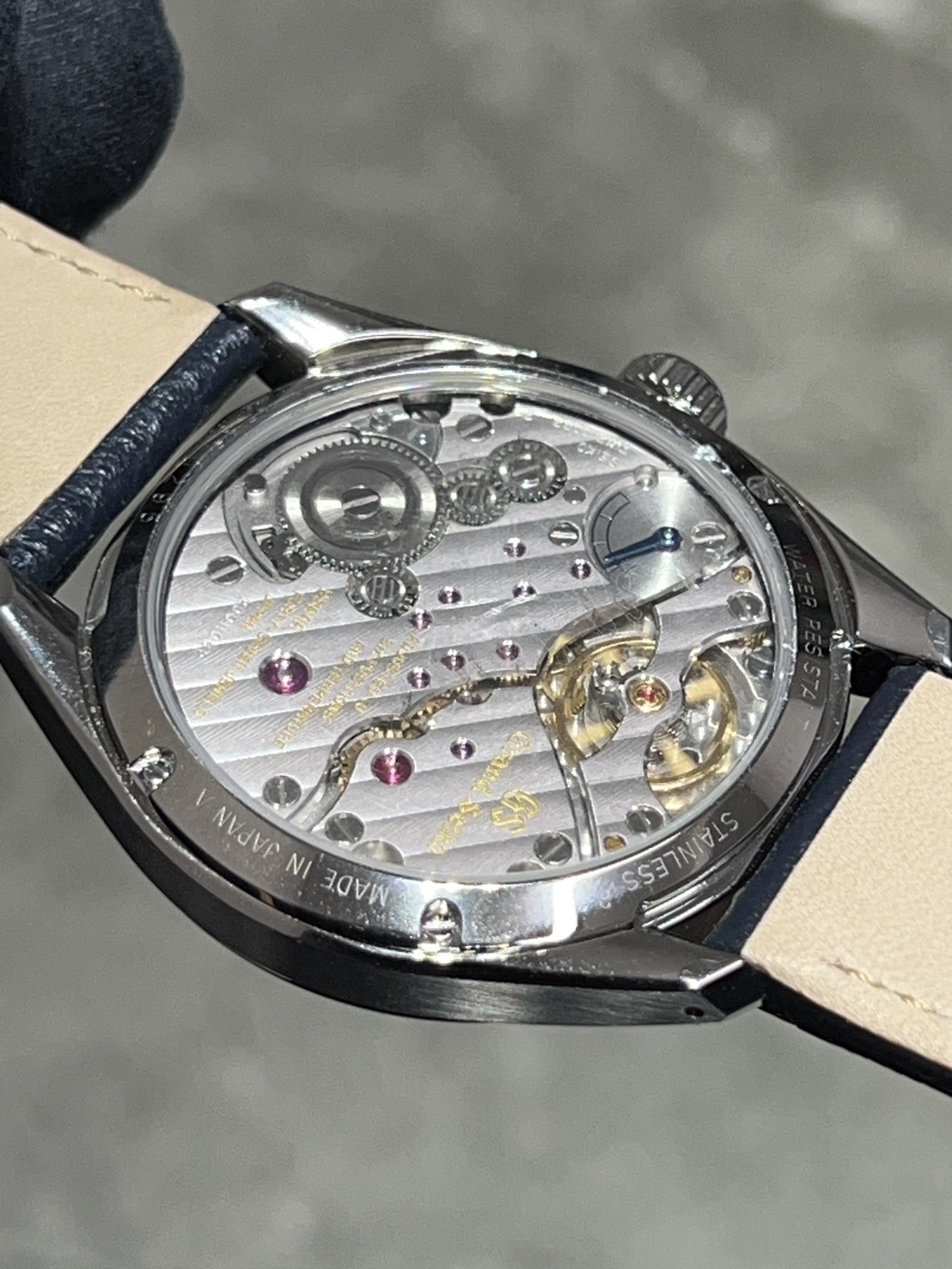 裏蓋からは2025年に登場した新キャリバー「9SA4」がご覧頂け、ハイビート機構(毎時36,000振動)を手巻きで楽しむことができます。