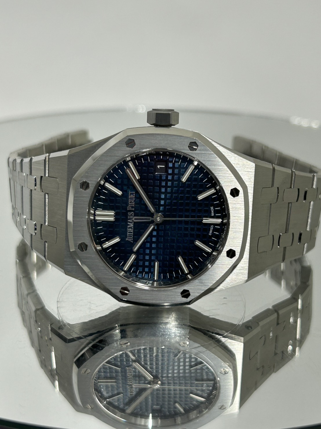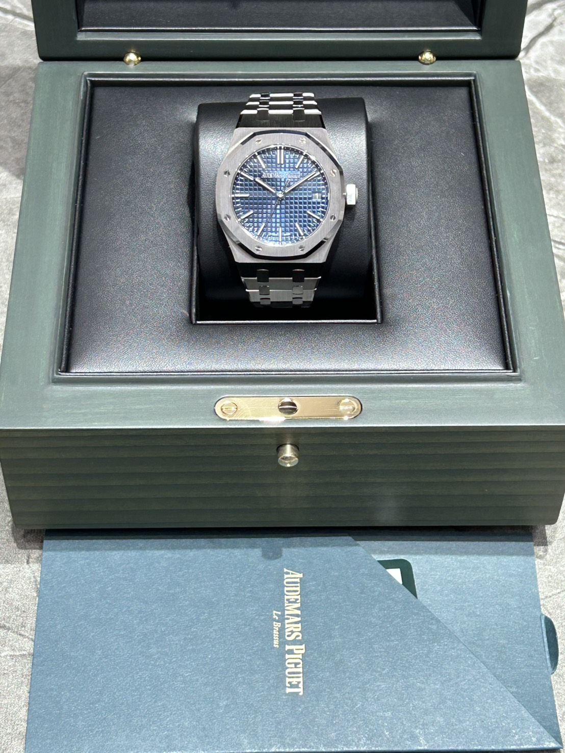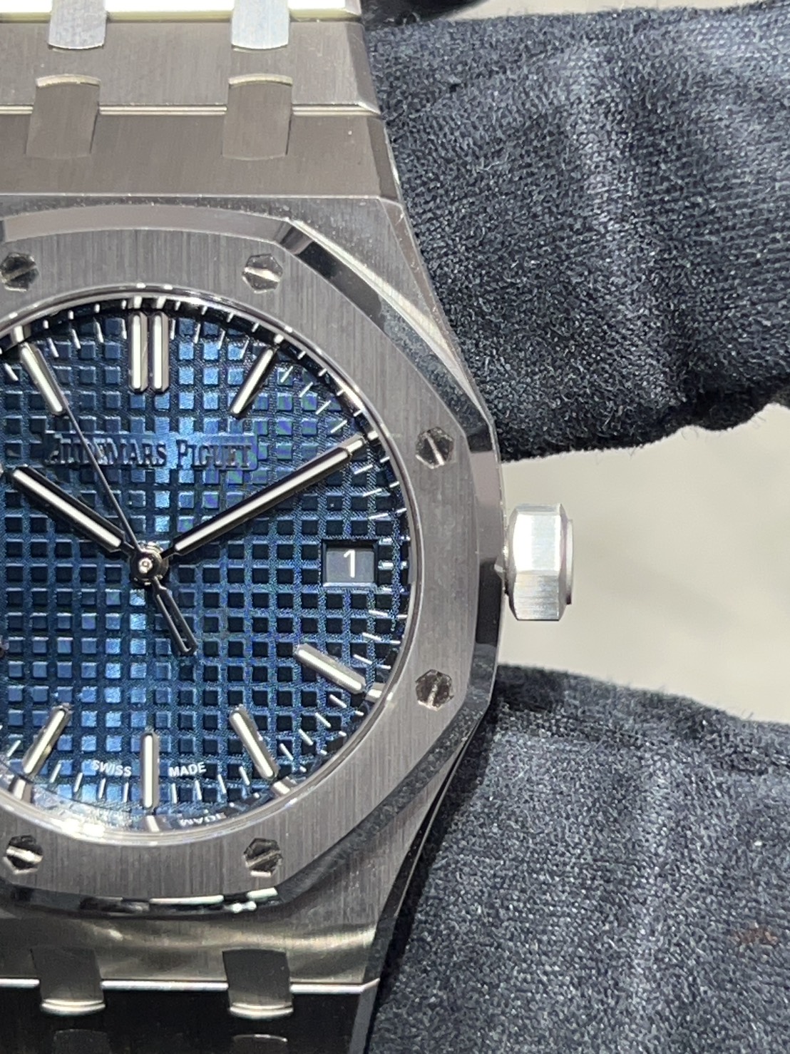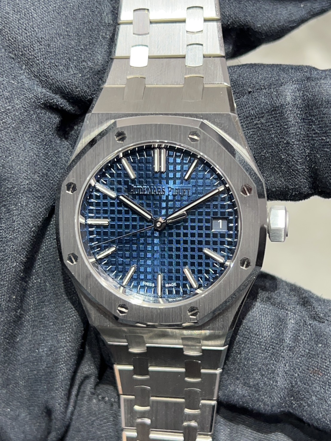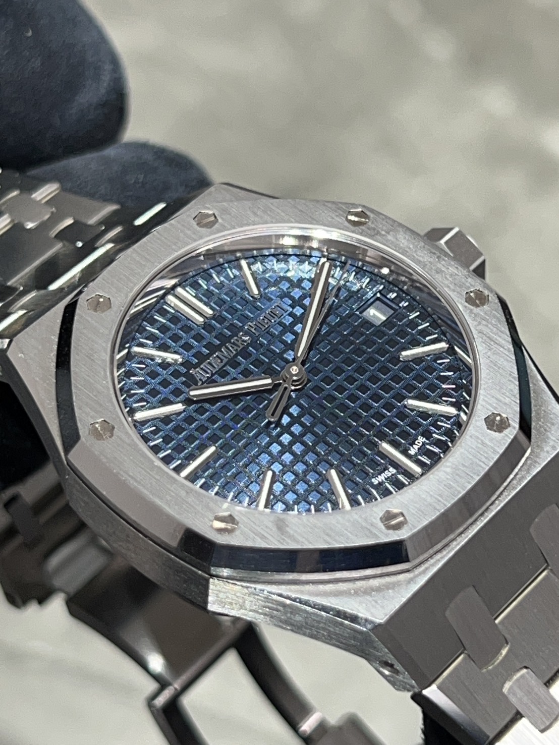 圧倒的人気を誇るロイヤルオークの37㎜モデル、15550STのナイトブルー文字盤が入荷致しました。