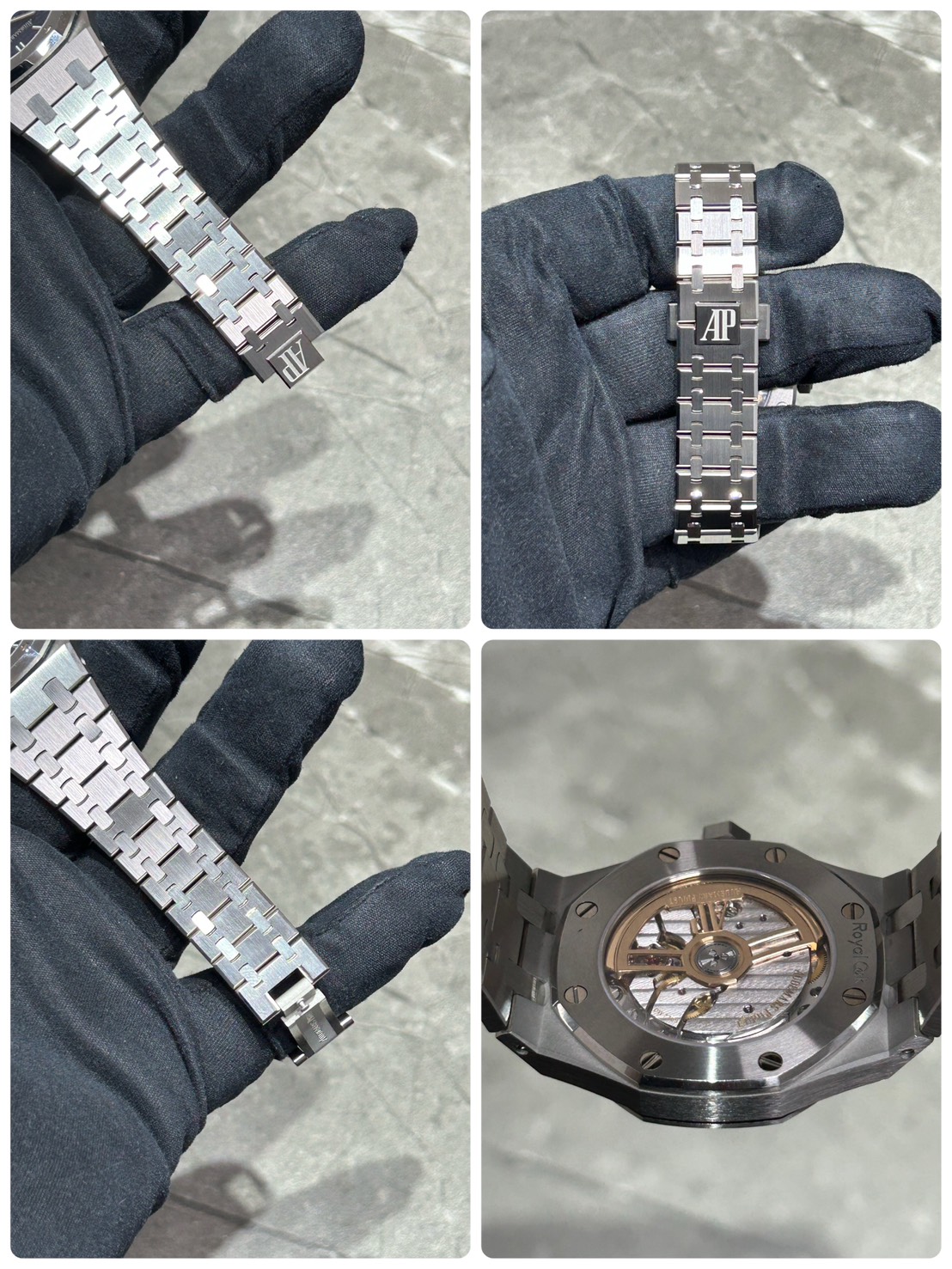 八角形の特徴的なケースに見事な仕上げのロイヤルオーク、裏蓋はシースルーとなっており自社製ムーブメント「Cal.5900」が鑑賞できます。