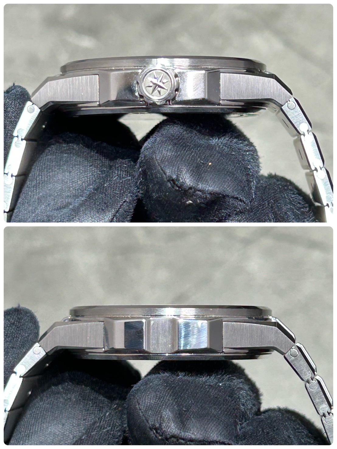 ご愛用に伴う微細なスレが全体的にあり、ブレスの鏡面部分に光に当てれば確認できるスレ傷が確認できますが深い傷ではなくどちらかと言えば目立たないレベルです。全体的なコンディションは良好になりますので中古美品での販売とさせて頂きます。