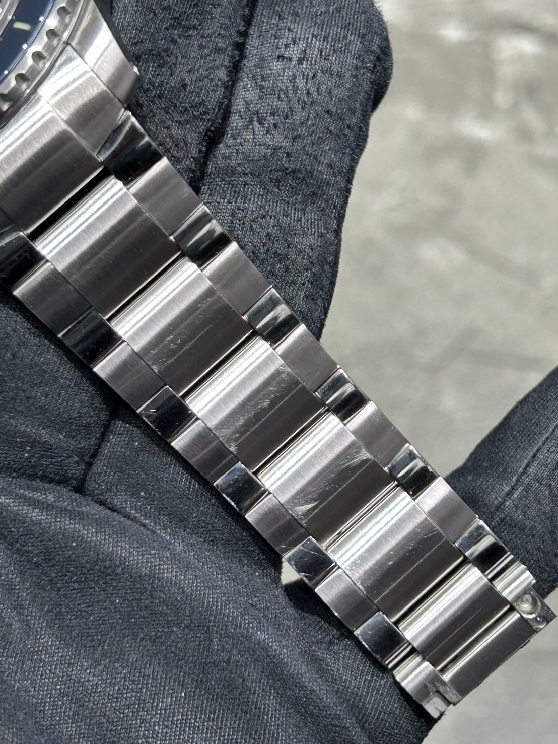 全体的にご愛用に伴う微細なスレが確認できます。ブレス鏡面部分やバックル等にスレ傷は確認できますが深い傷はない印象で綺麗な印象を受けたので中古美品として出品させて頂きます。