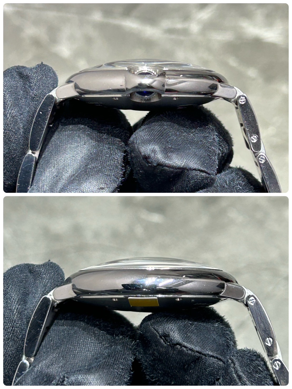 全体的にご愛用に伴う微細なスレが光に当てると確認できます。ポリッシュ仕上げの部分が多いためスレが光に当てると目立つ印象ですが深かったり光に当てないと本当に目立たない部分が多かった為中古美品として出品させて頂きます。