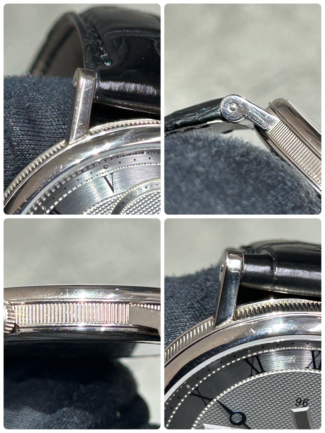 38㎜のホワイトゴールド製のケースに8㎜と極薄、その中に搭載されたパワーリザーブは96時間と圧巻のスペックでございます。