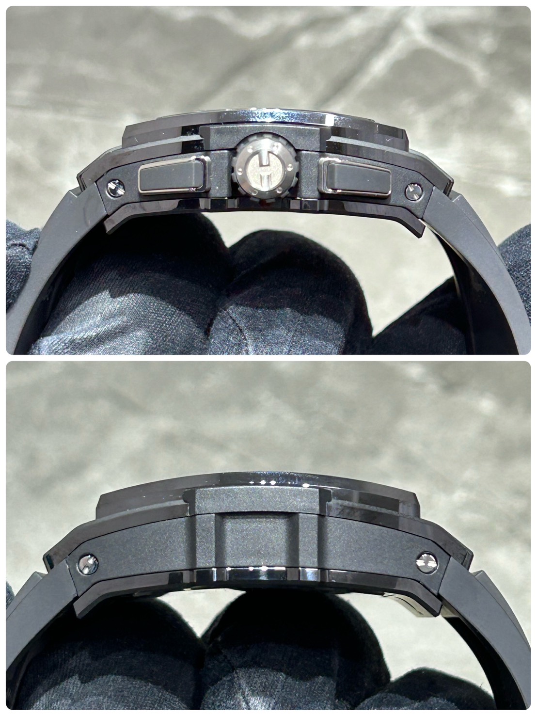 ケースはブラックセラミック製になり、対傷性に優れアクティブなシーンでも使用が可能になっております。