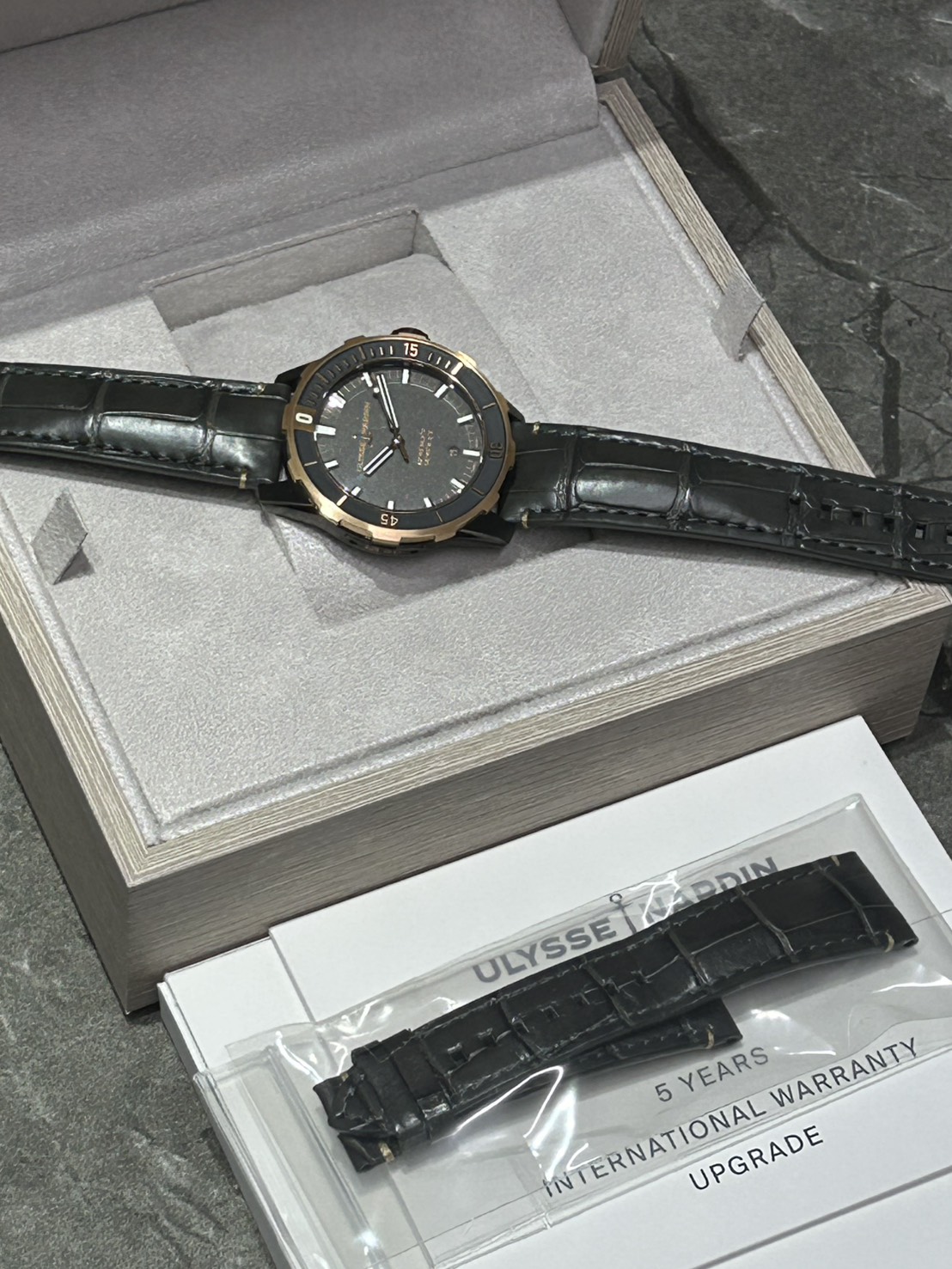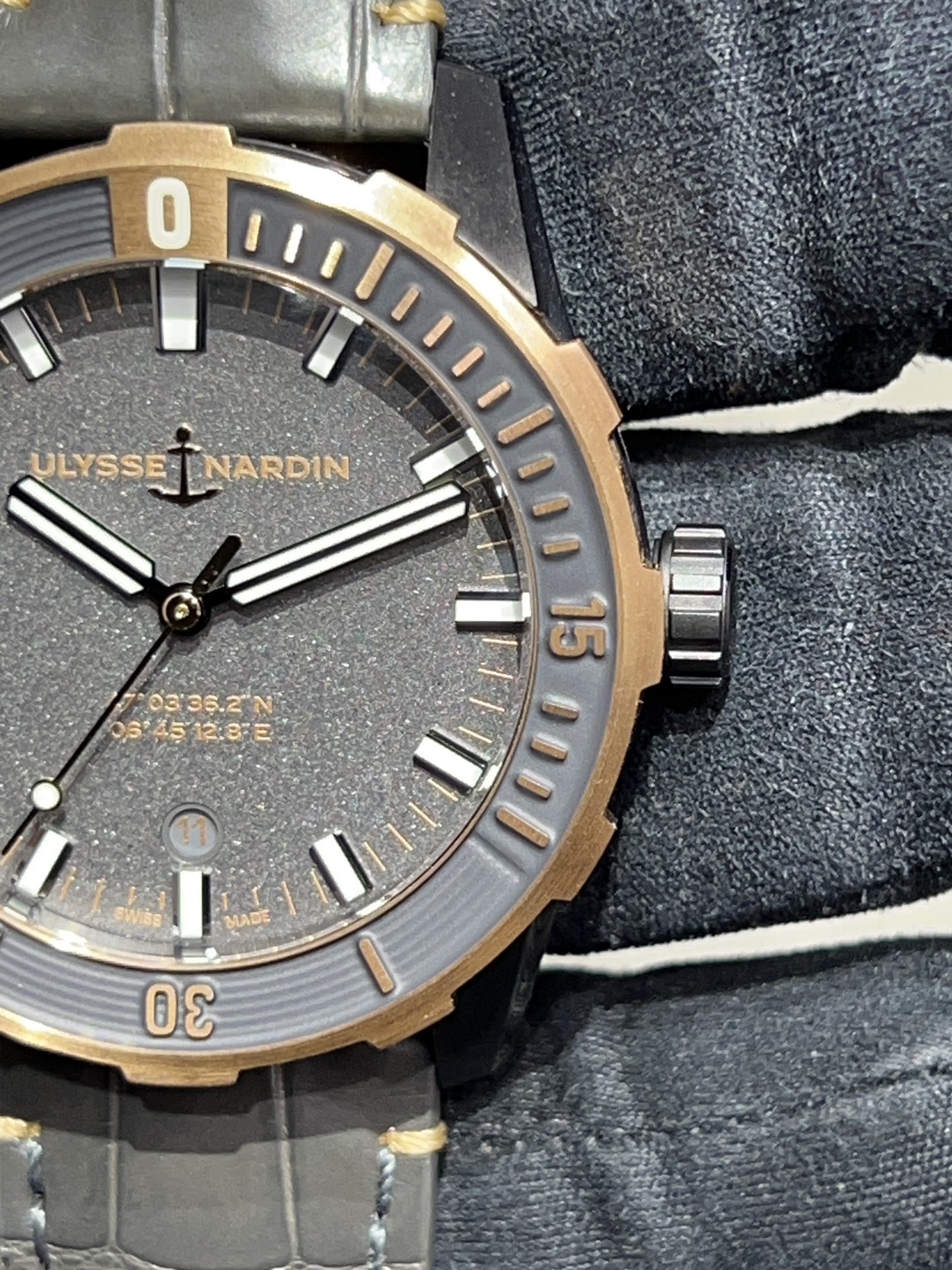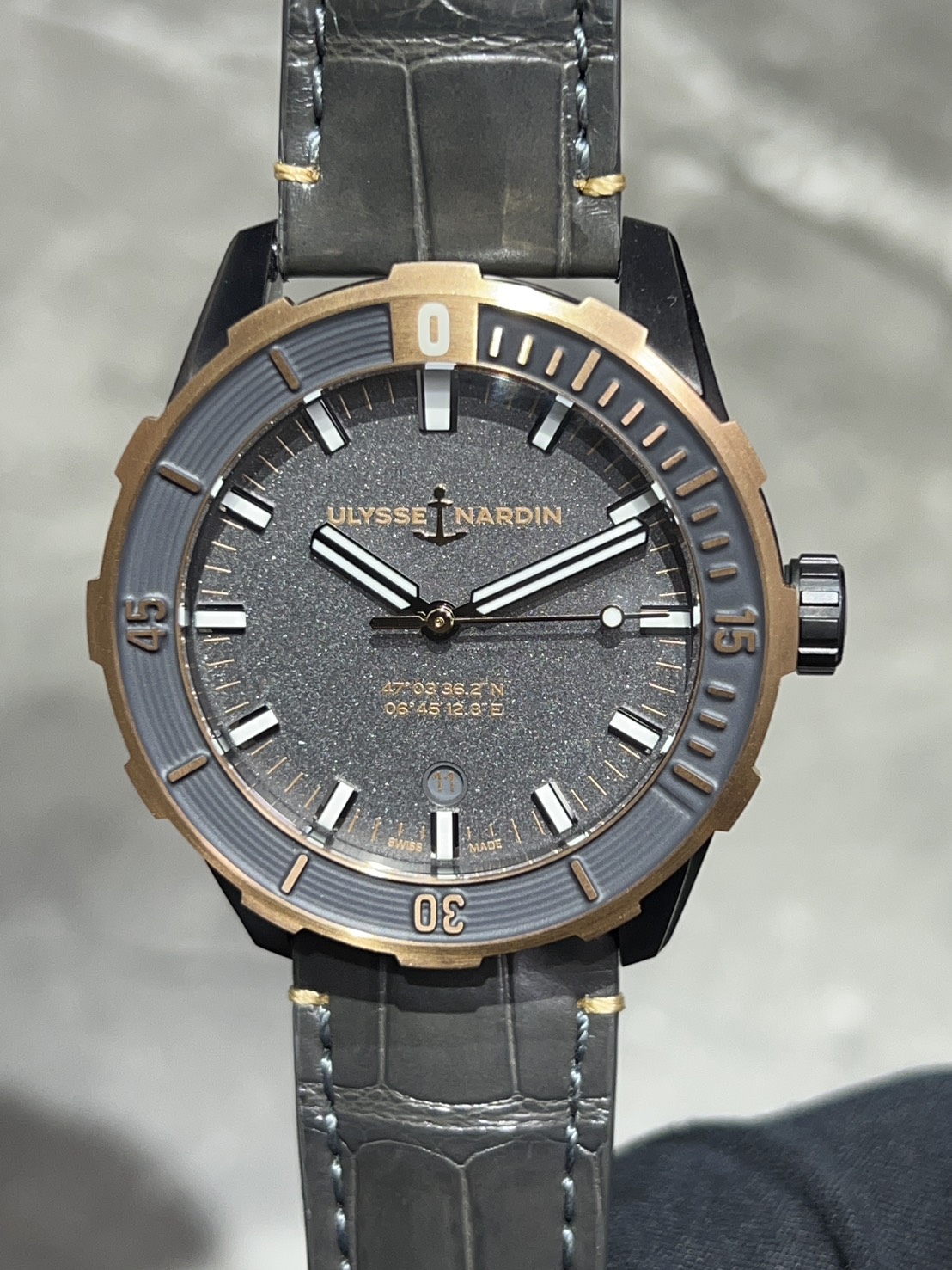 グレーとピンクゴールドのコントラストが上品なユリナルダン ダイバーが入荷致しました。