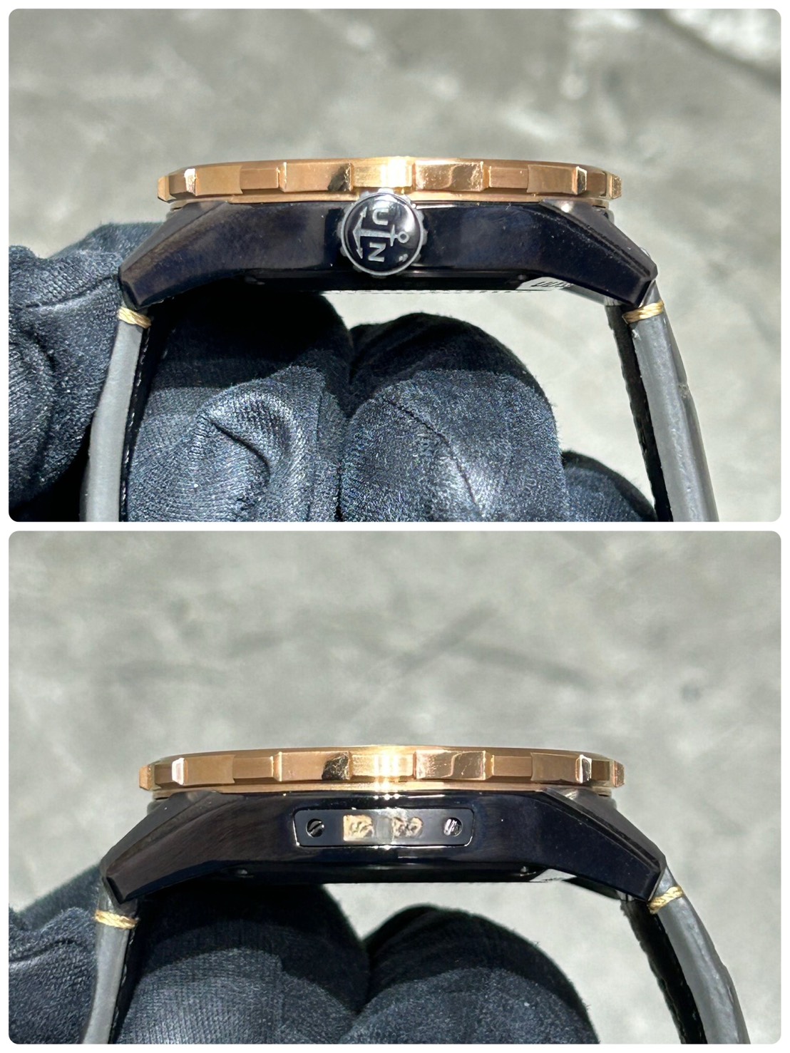 ケースはグレーPDVステンレスとなり、サテンとポリッシュのコントラストがスポーティで非常にカッコイイ仕上がりです。