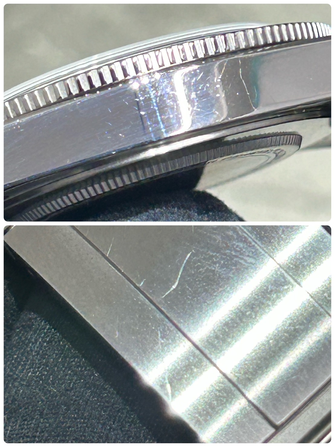 ご愛用に伴うスレ、小傷が全体的にございます。ケースやバックル等に確認ができますが通常使用でご愛用なさったレベルですので深い傷ではございません。