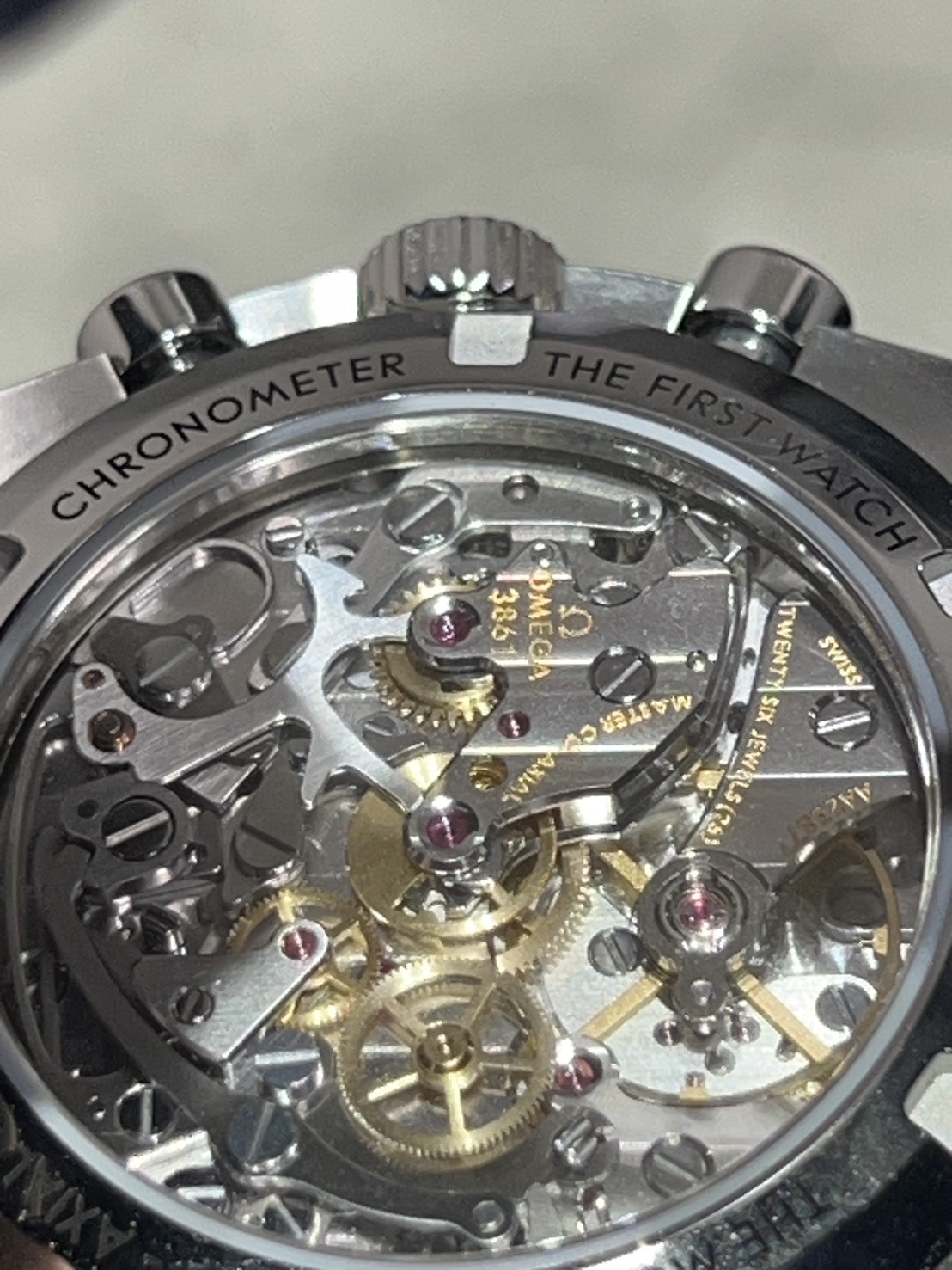 裏蓋からは手巻きキャリバー3861を鑑賞する事ができ、ポリッシュ&ブラッシュ仕上げのステンレスブレスはしなやかな付け心地となっております。