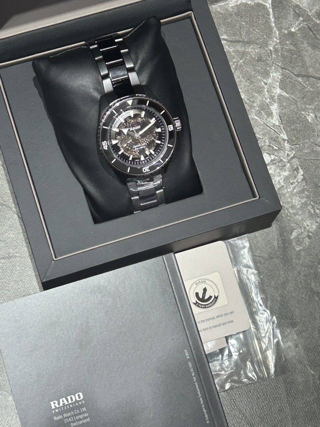 ラドーのハイテクセラミックは主に酸化ジルコニウムを使用しており、強度と耐傷性が非常に高く、軽量な素材となっております。