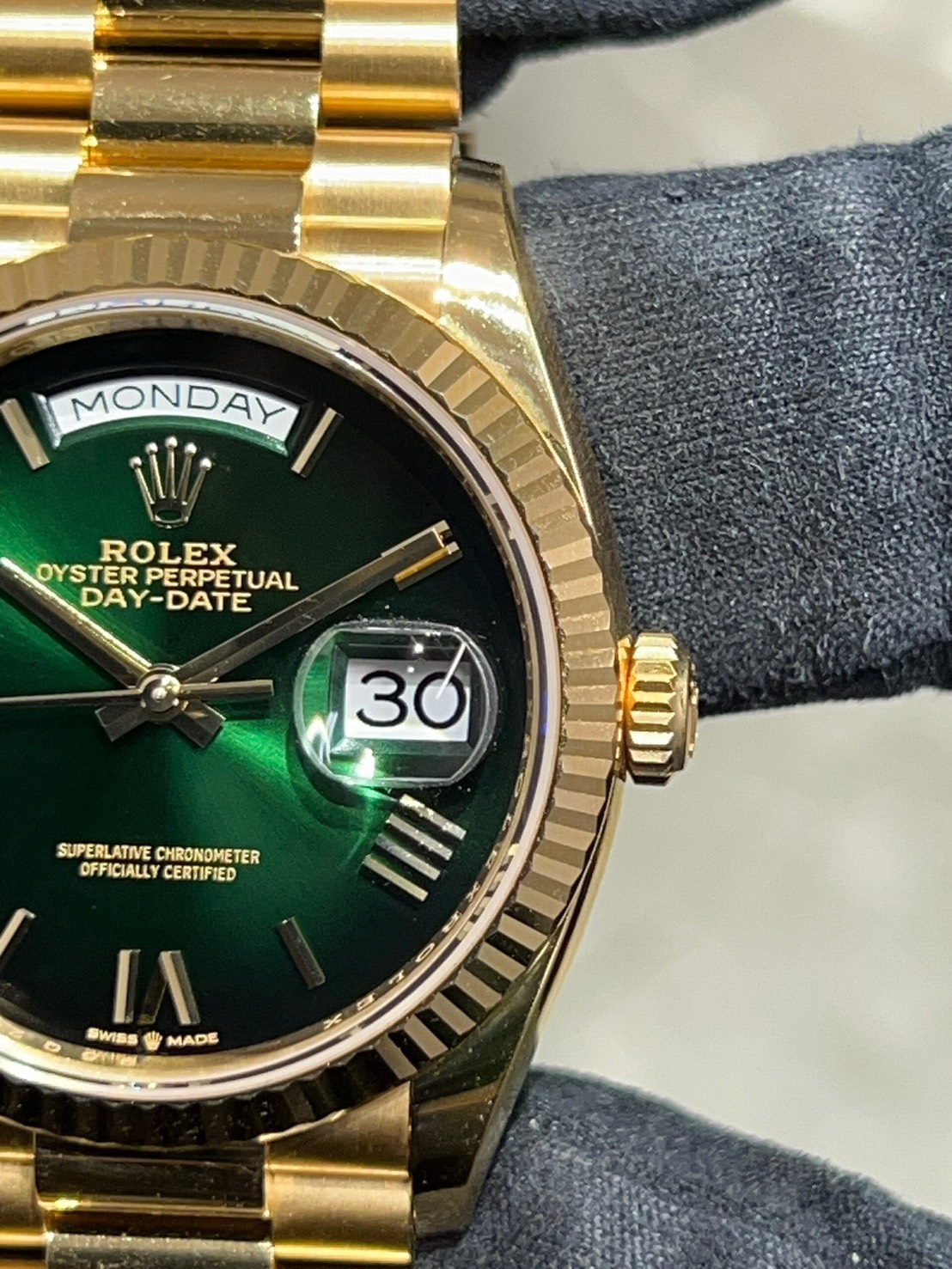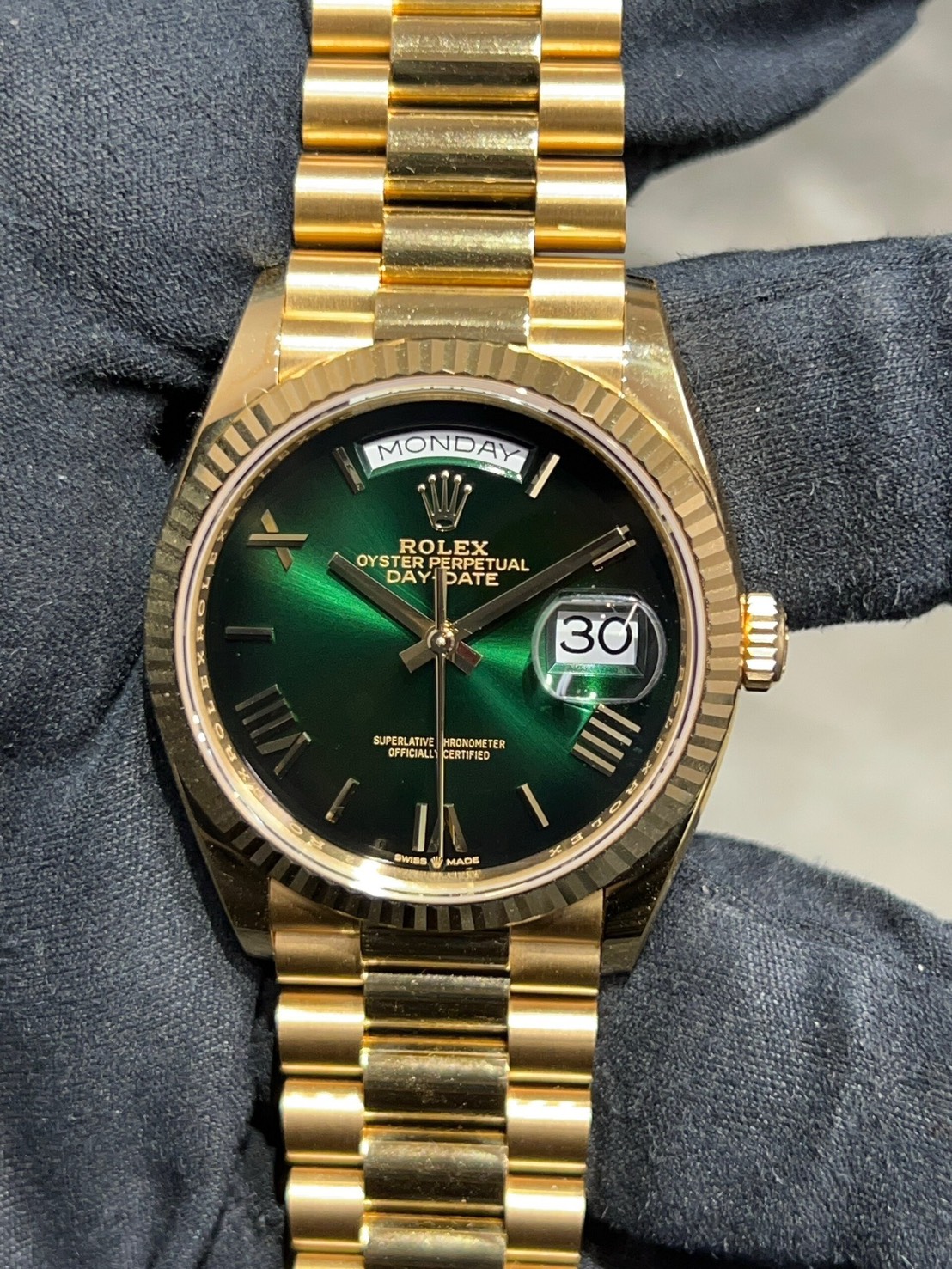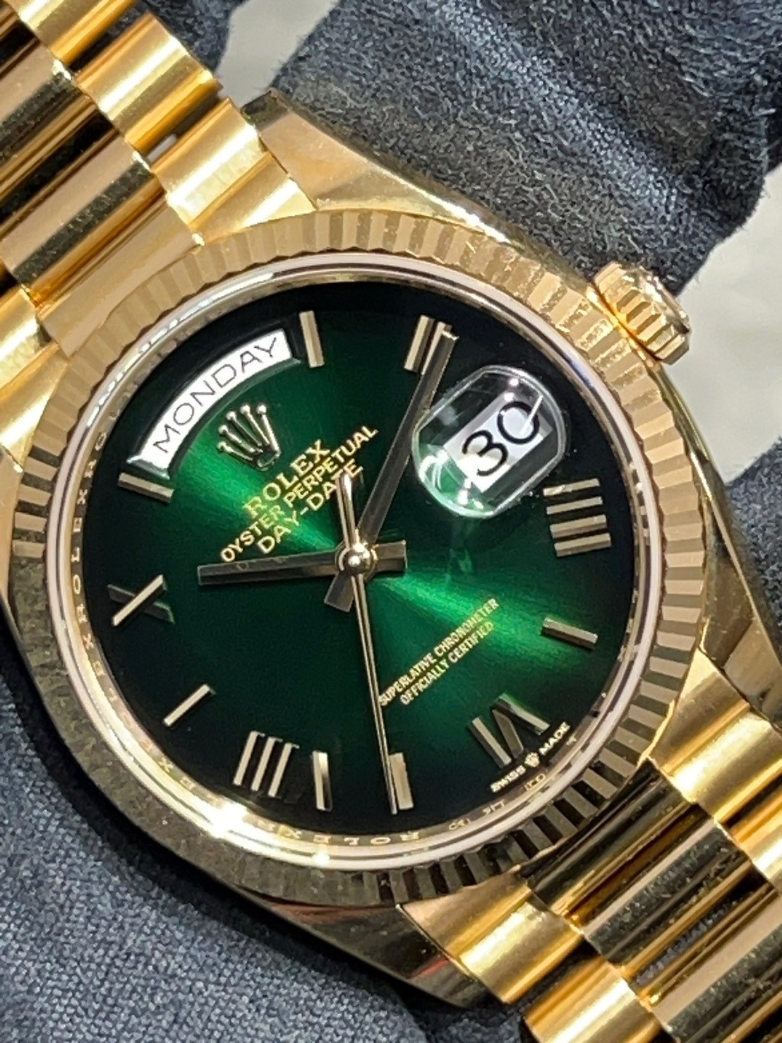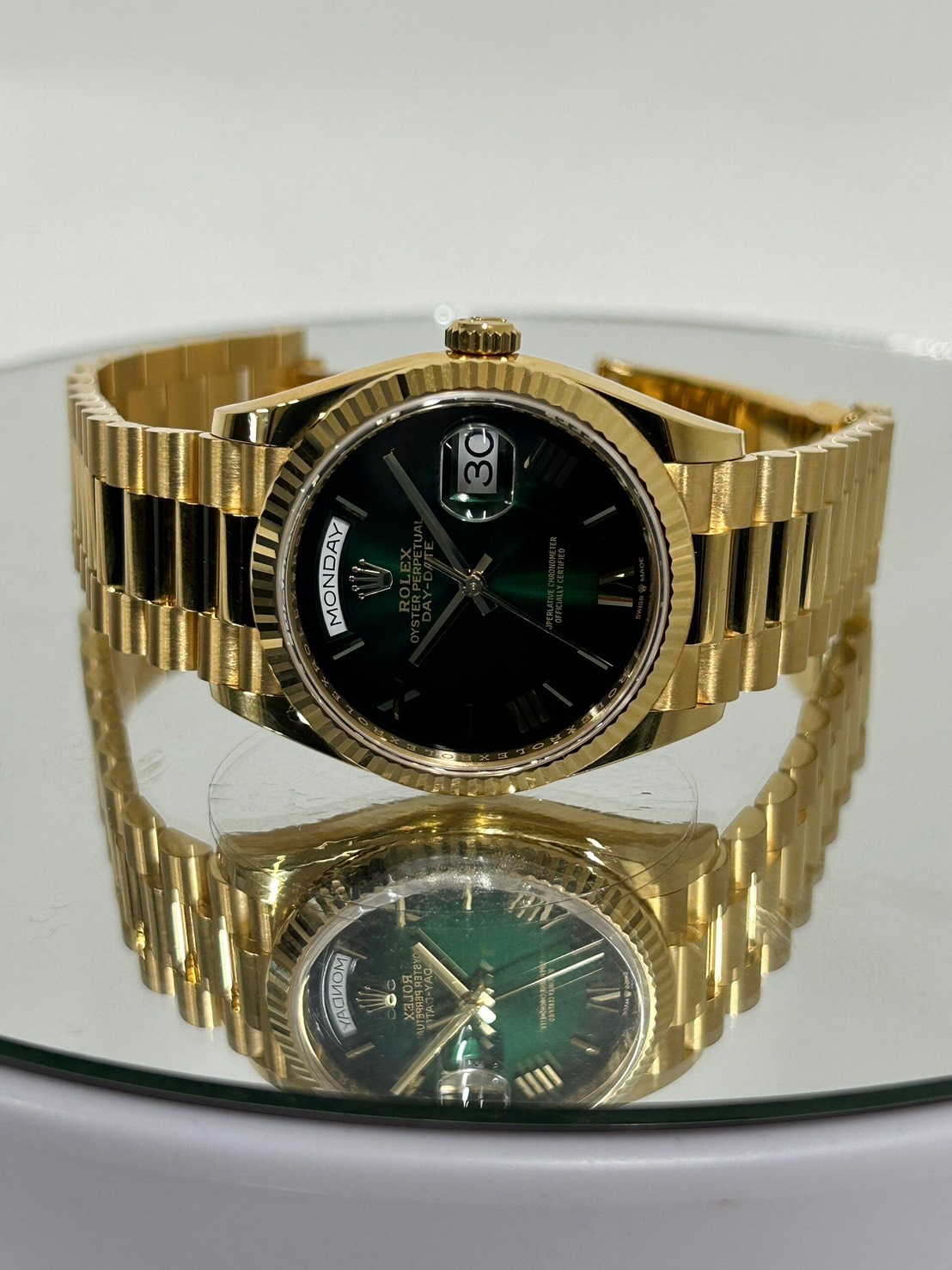 今回はロレックスのコーポレートカラーでもあるグリーンオンブレダイヤルのデイデイトが入荷致しました。