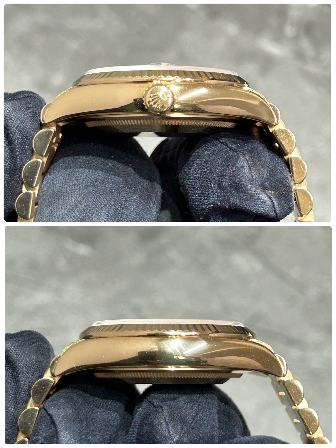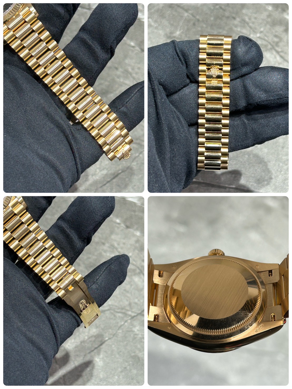ローマインデックス、針もイエローゴールドで彩られゴージャス感に溢れ、特徴的なプレジデントブレスレットも高級感があり大変煌びやかなモデルとなっております。