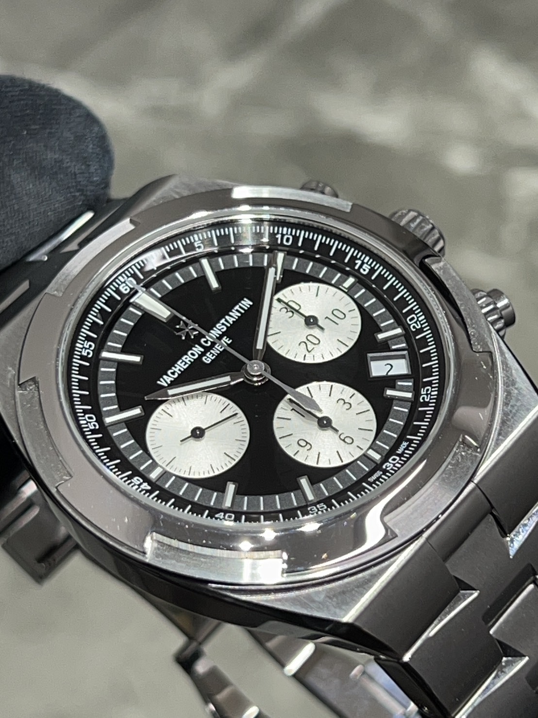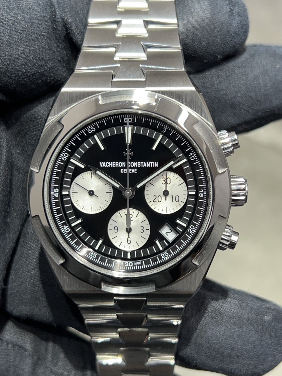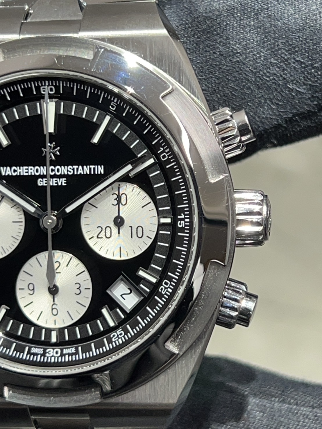 ヴァシュロン・コンスタンタンの時計コレクション「オーヴァーシーズ」に含まれるクロノグラフ機能搭載のオーヴァーシーズクロノグラフ、今回は黒文字盤にシルバーカウンターの引き締まった印象のモデルが入荷致しました。
