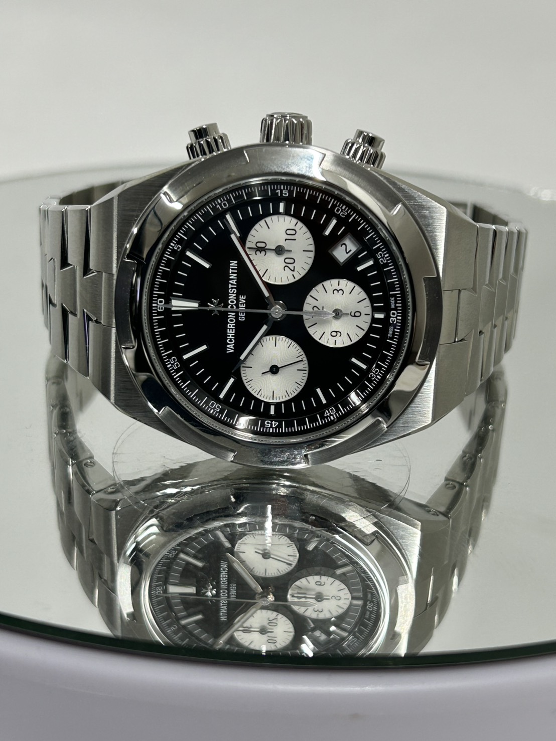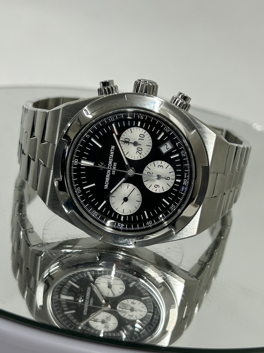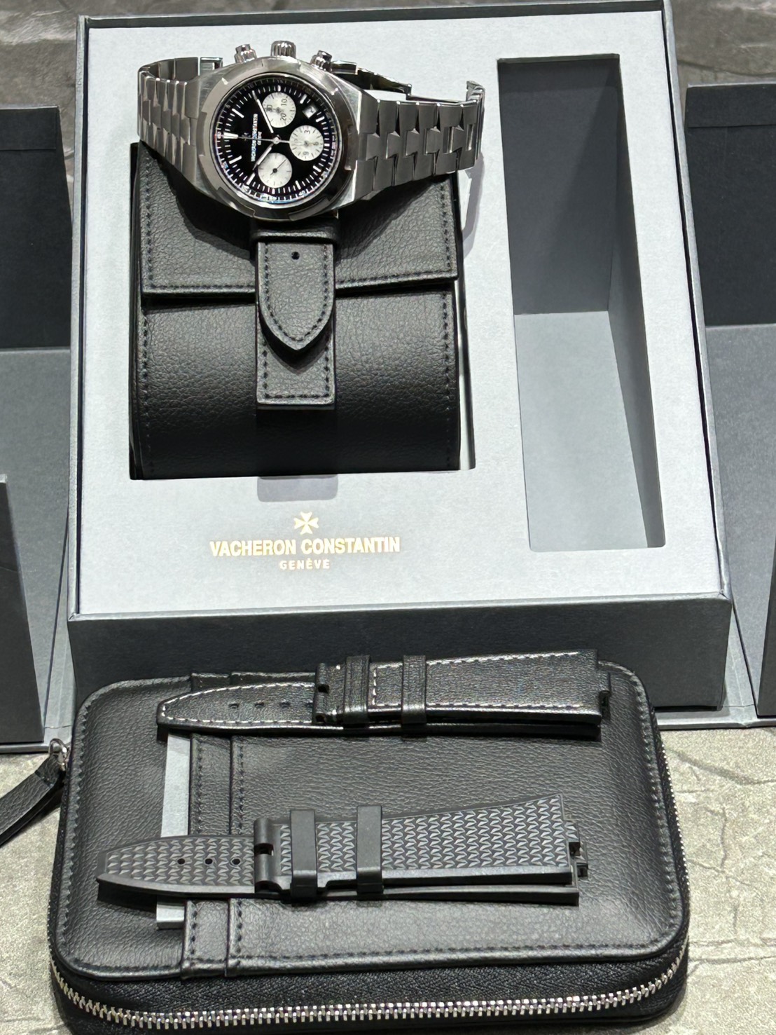 ヴァシュロン・コンスタンタンの時計コレクション「オーヴァーシーズ」に含まれるクロノグラフ機能搭載のオーヴァーシーズクロノグラフ、今回は黒文字盤にシルバーカウンターの引き締まった印象のモデルが入荷致しました。