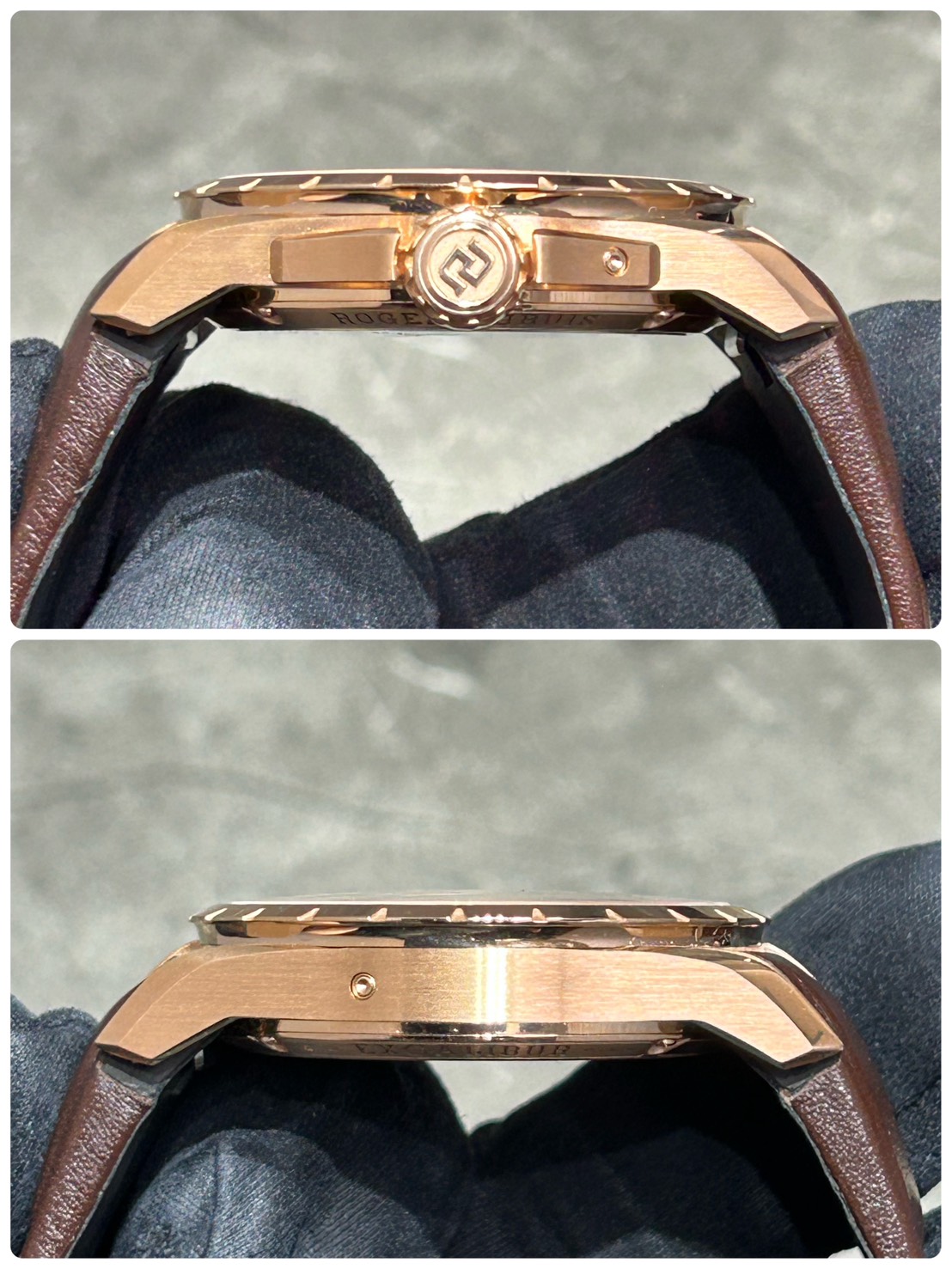 ケースは40㎜と通常のエクスカリバーより少々小ぶりで、ピンクゴールドケースはダイヤルとの相性も良く神々しい雰囲気となっております。