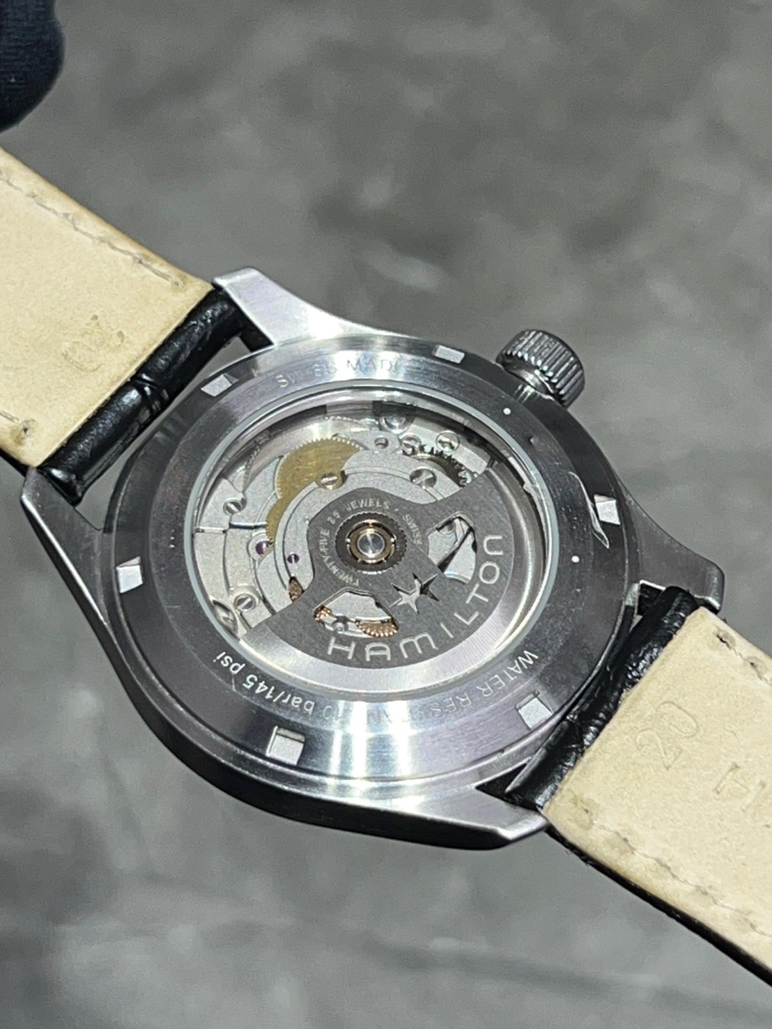 裏蓋からは自動巻きムーブメントH-10を鑑賞する事ができ、自動巻き、80時間パワーリザーブ、10気圧防水と実用性に優れておりコストパフォーマンスにも優れたモデルになりますのでこの機会に是非ご検討宜しくお願いします。