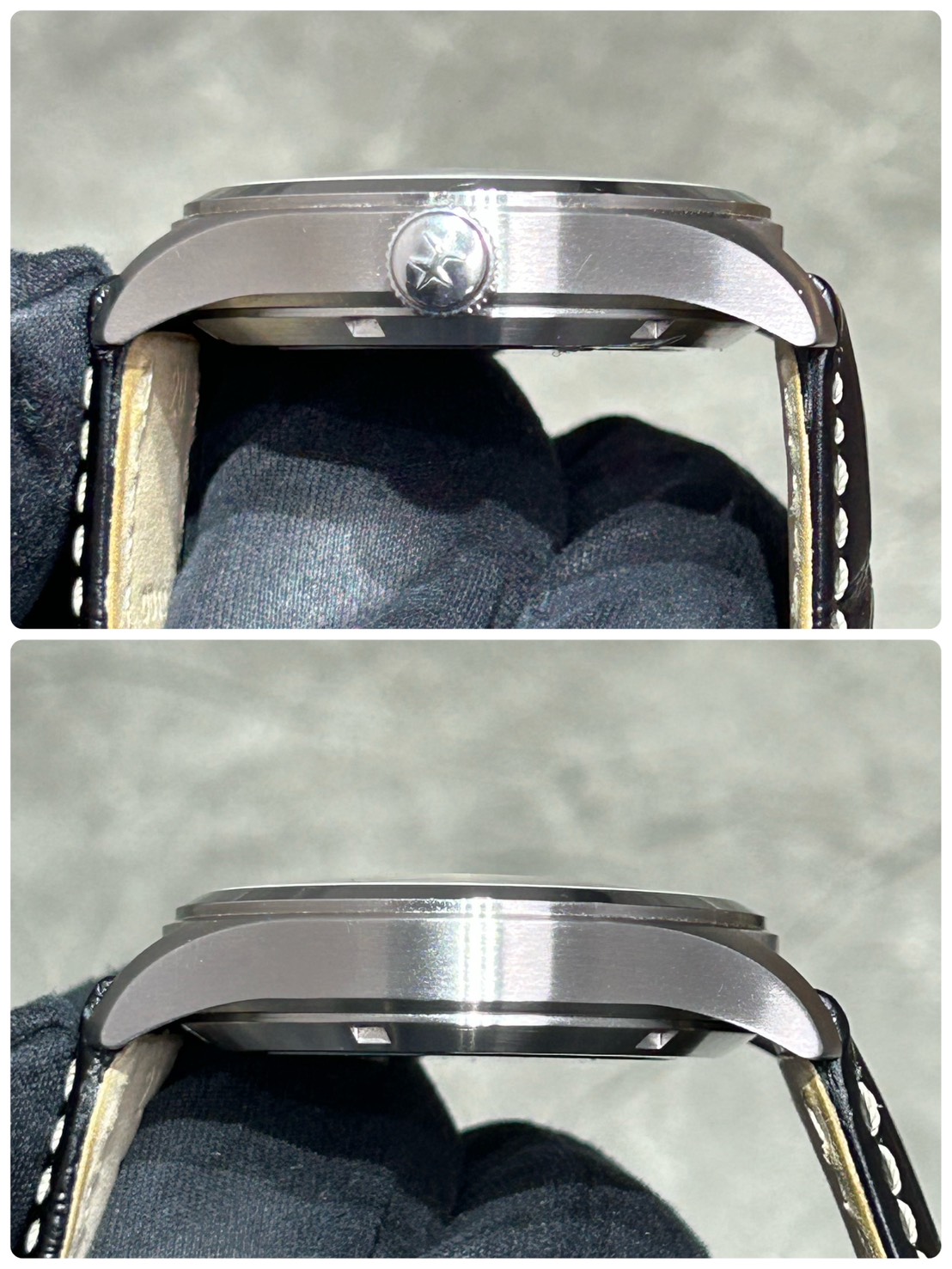 ご愛用に伴うスレが全体的にあり、ベゼル鏡面部分にスレが確認できますが光に当てれば確認できるレベルで目立った傷等は少ない印象です。