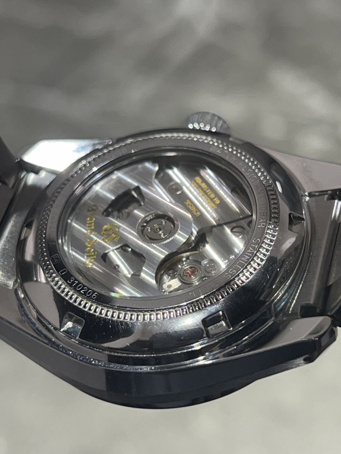 裏蓋からは自社製キャリバー9S86を鑑賞する事ができ、毎時36,000振動のハイビートによって生まれる滑らかな秒針の動きは精度の高さの表れとなっております。