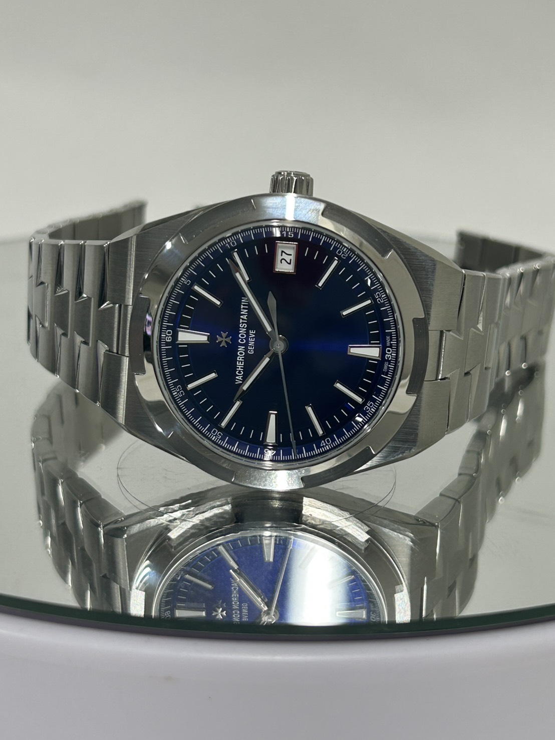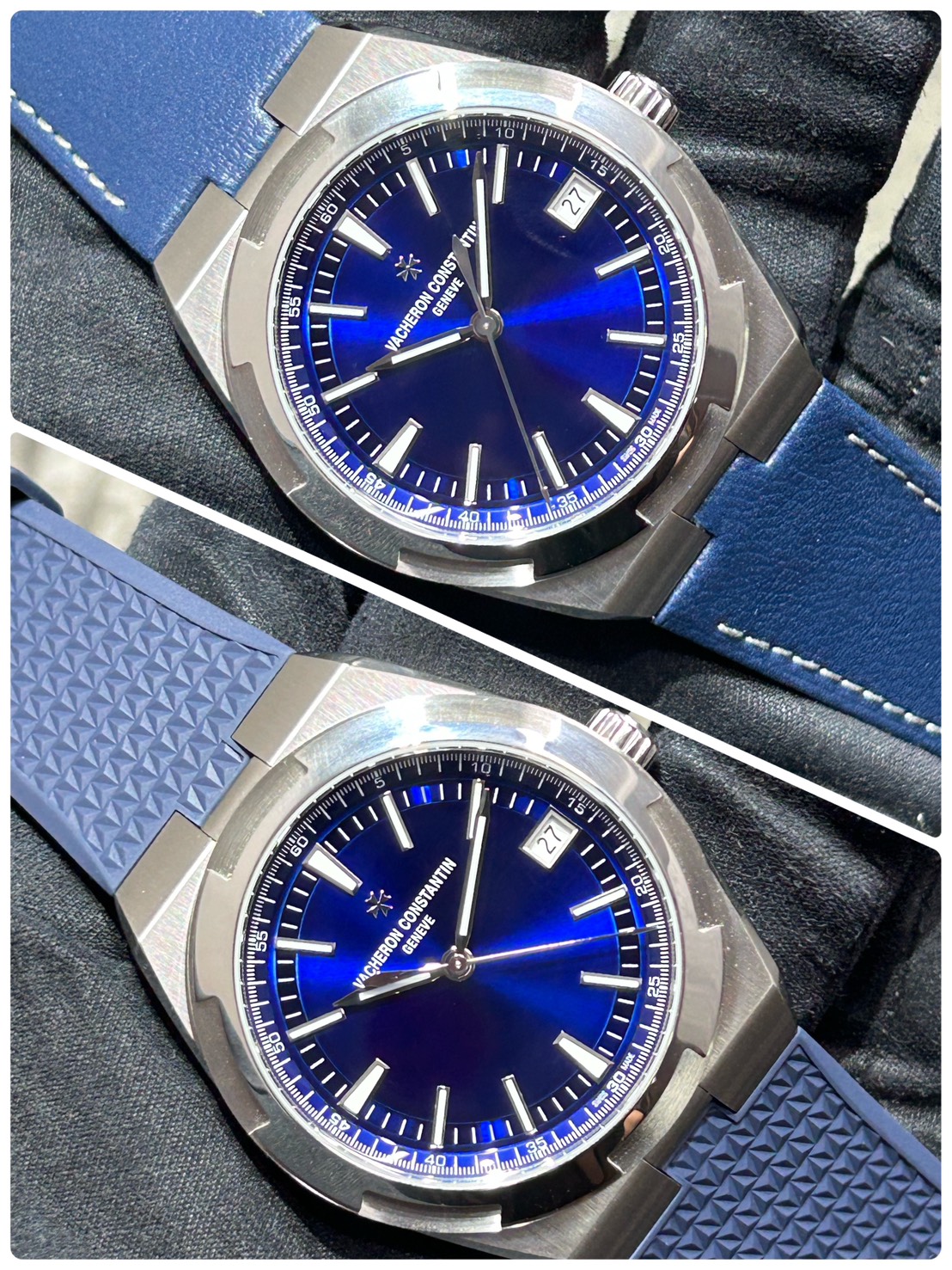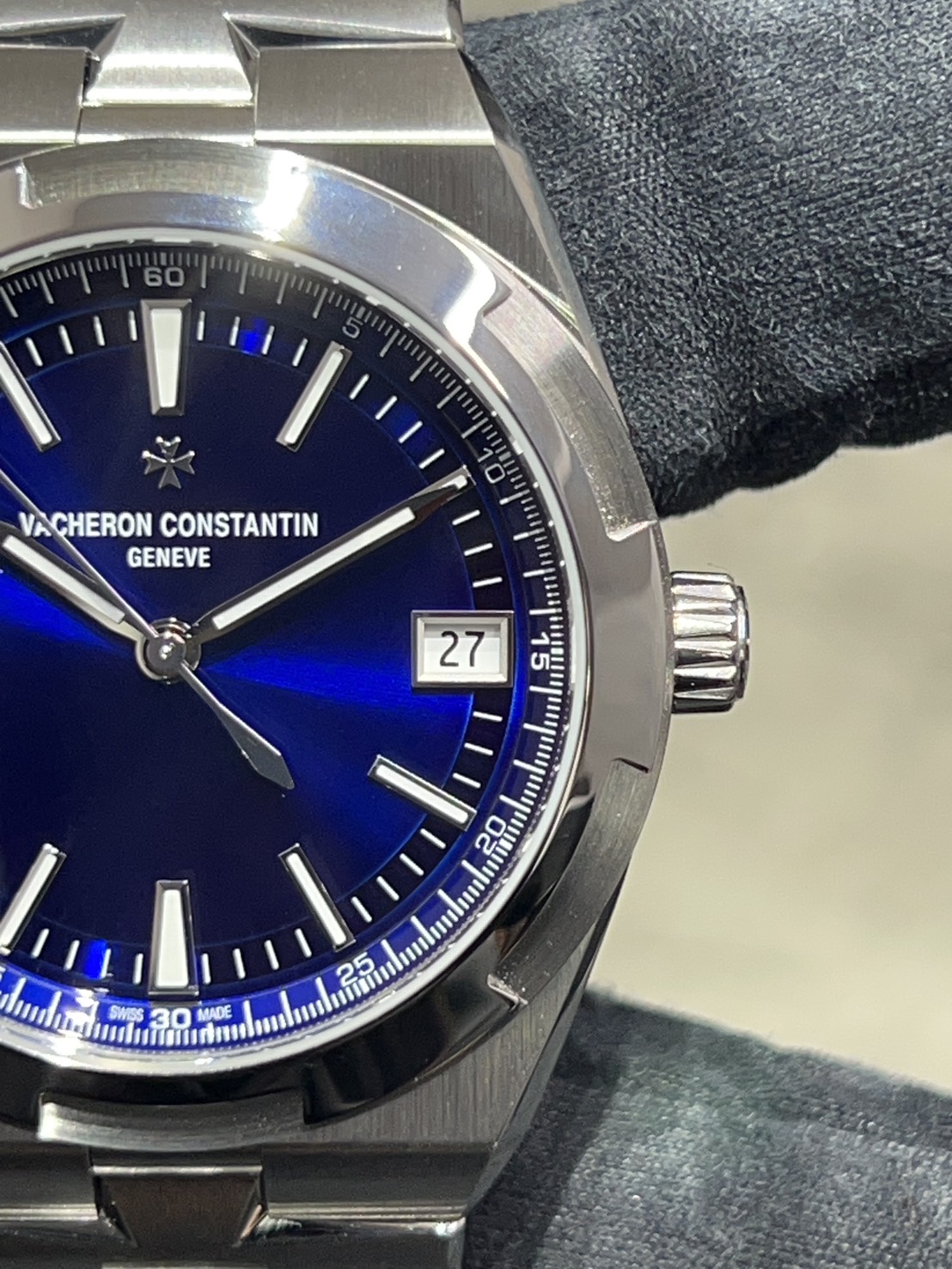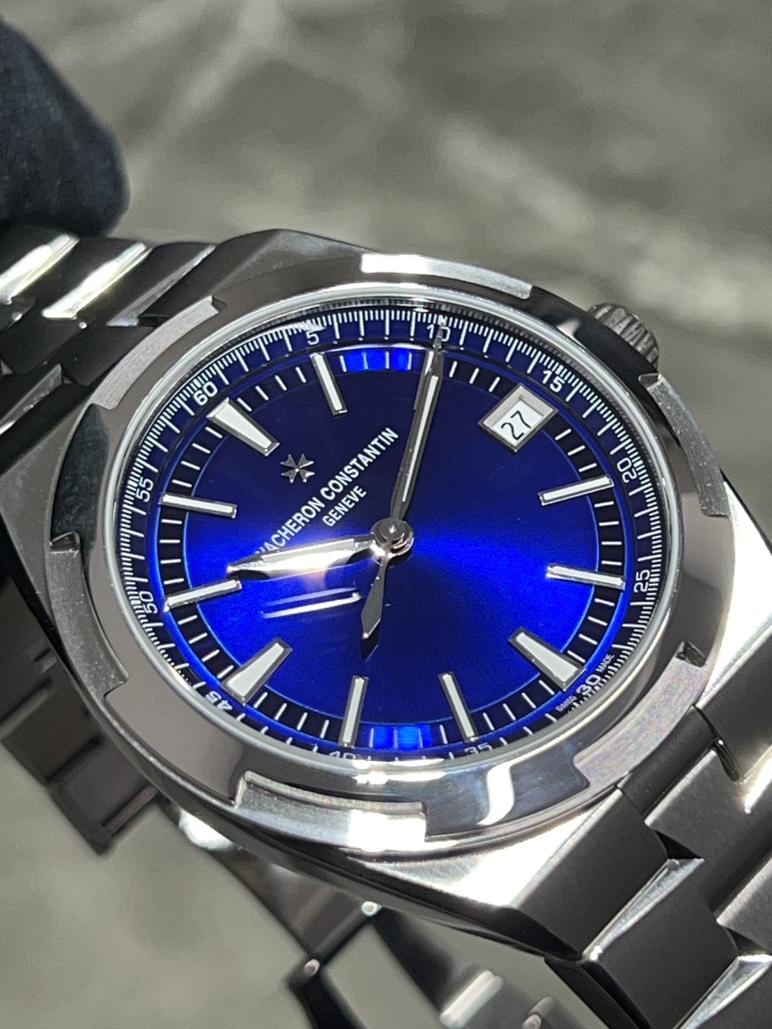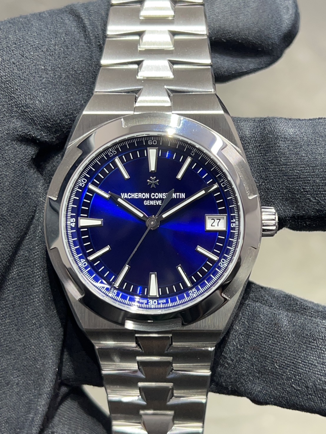 ヴァシュロン・コンスタンタンを代表する珠玉の一本、オーバーシーズのブルーダイヤルで鮮やかなダイヤルにインデックスやマルタを模したベゼルの煌めきが美しい大変ラグジュアリーな人気モデルでございます。