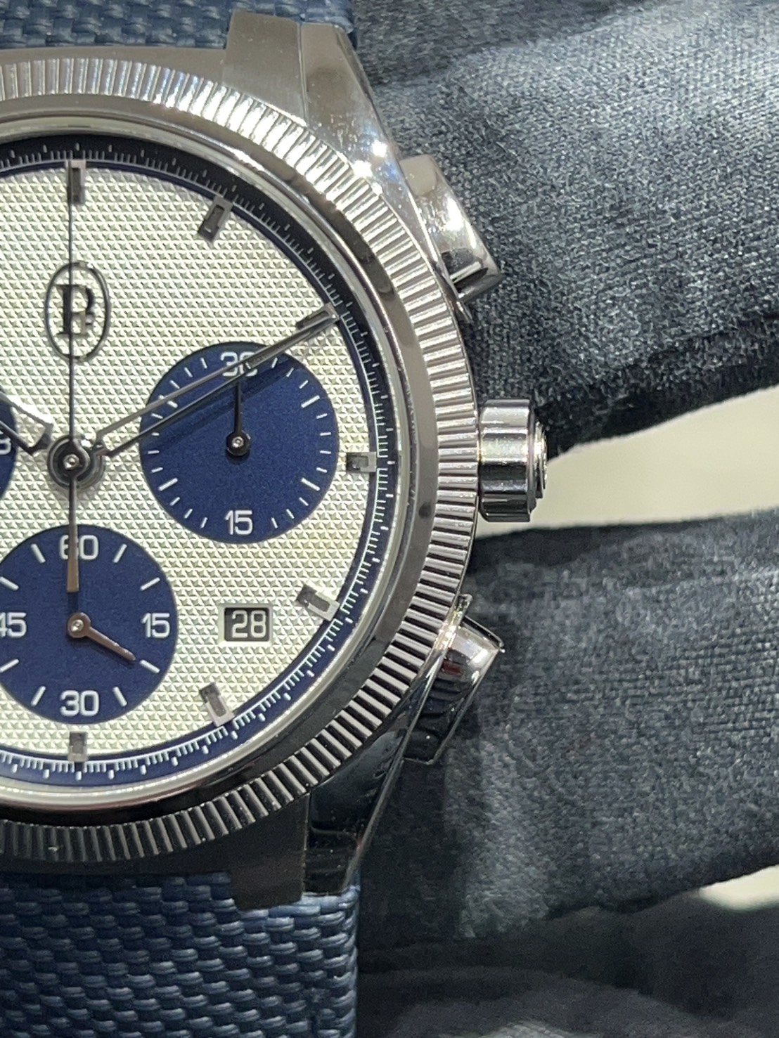 ブルーとシルバーのコントラストがカッコイイトンダPFスポーツクロノグラフが入荷致しました。