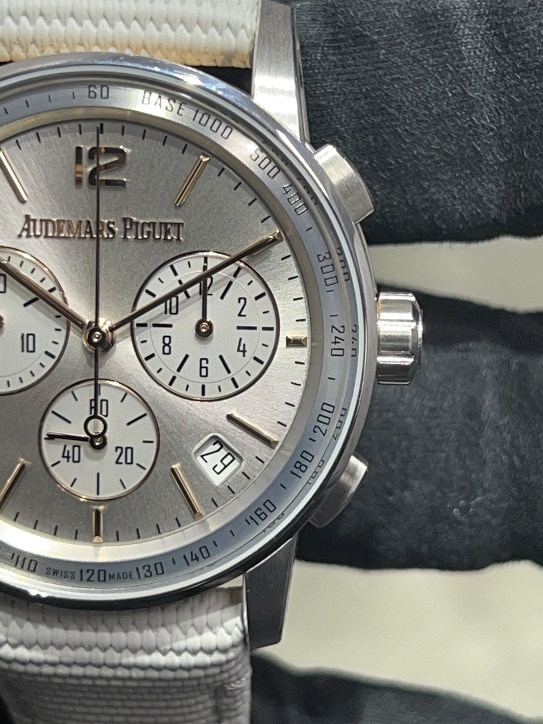 さらにクロノグラフカウンターが並び存在感も強く非常に華やかな時計となっておりますので、是非この機会にご検討宜しくお願い致します!
