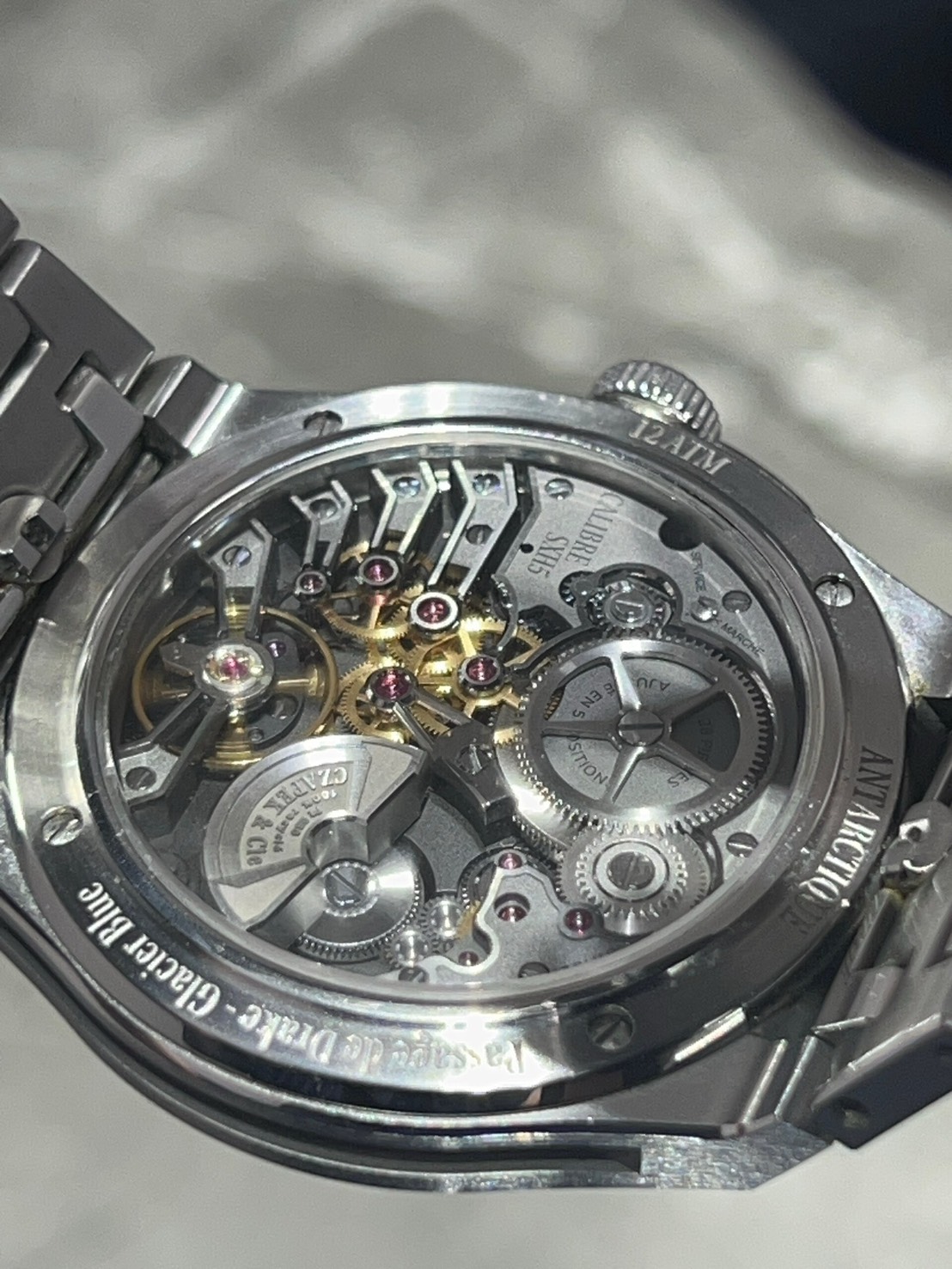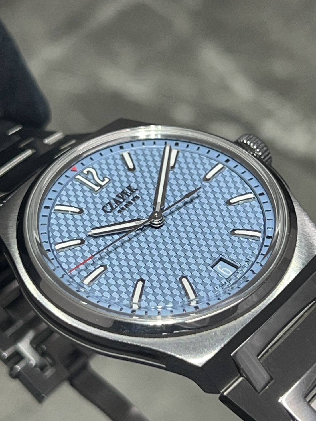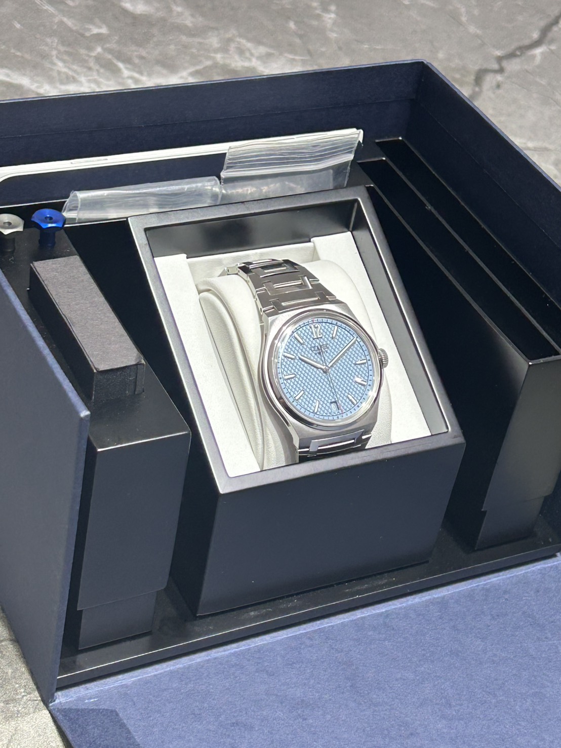 2022年頃に登場したGlacier Blueダイアル、40.5㎜ステンレススチールケースに統合型ブレスレットがスタイリッシュなラグジュアリースポーツウォッチでございます。