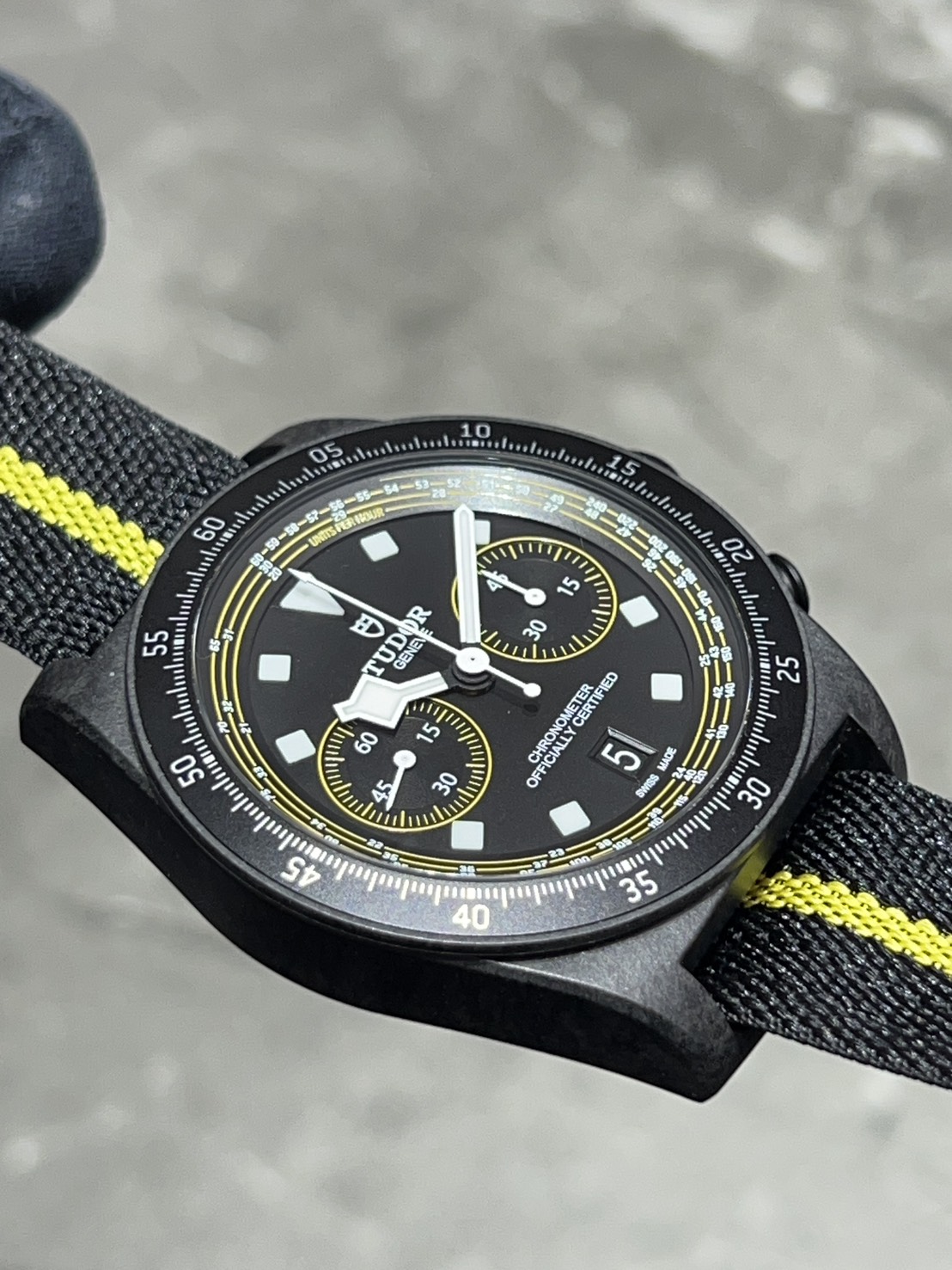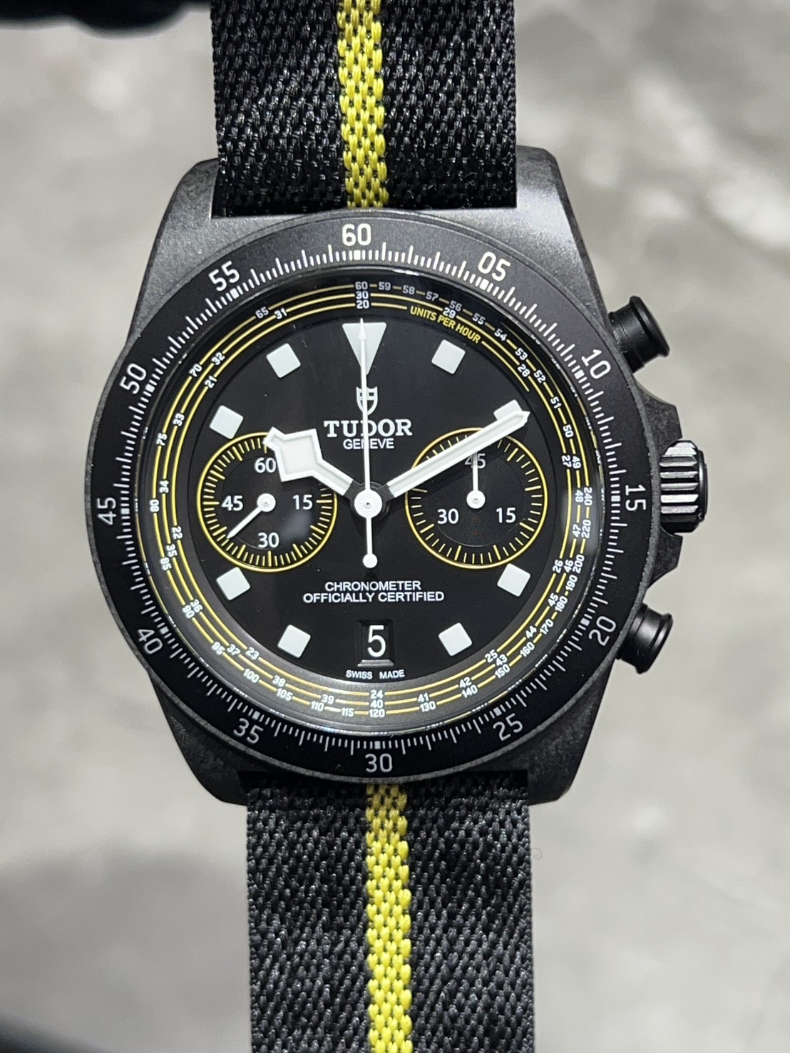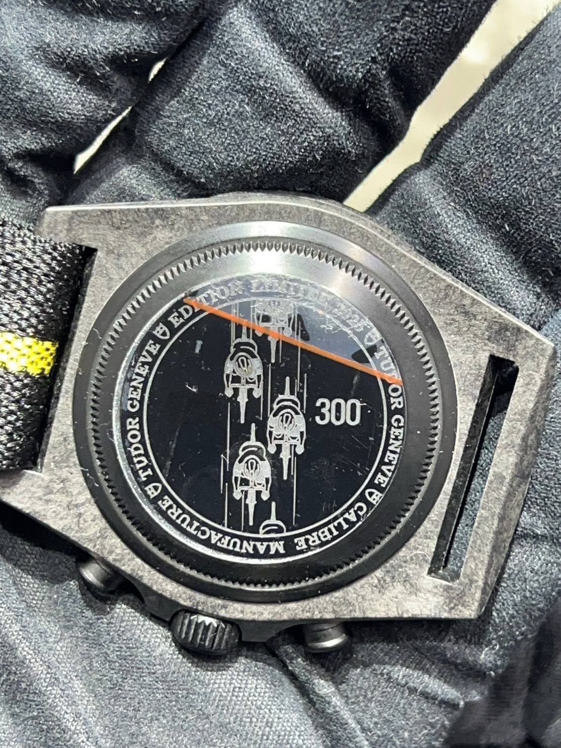 世界限定300本、2025年に発売されたチューダーの限定クロノグラフモデルで、元プロサイクリストのファビアン・カンチェラーラ(Fabian Cancellara)を称えるイエローアクセントが特徴で、Maillot Jaune(イエロージャージ)がイメージされたモデルでございます。