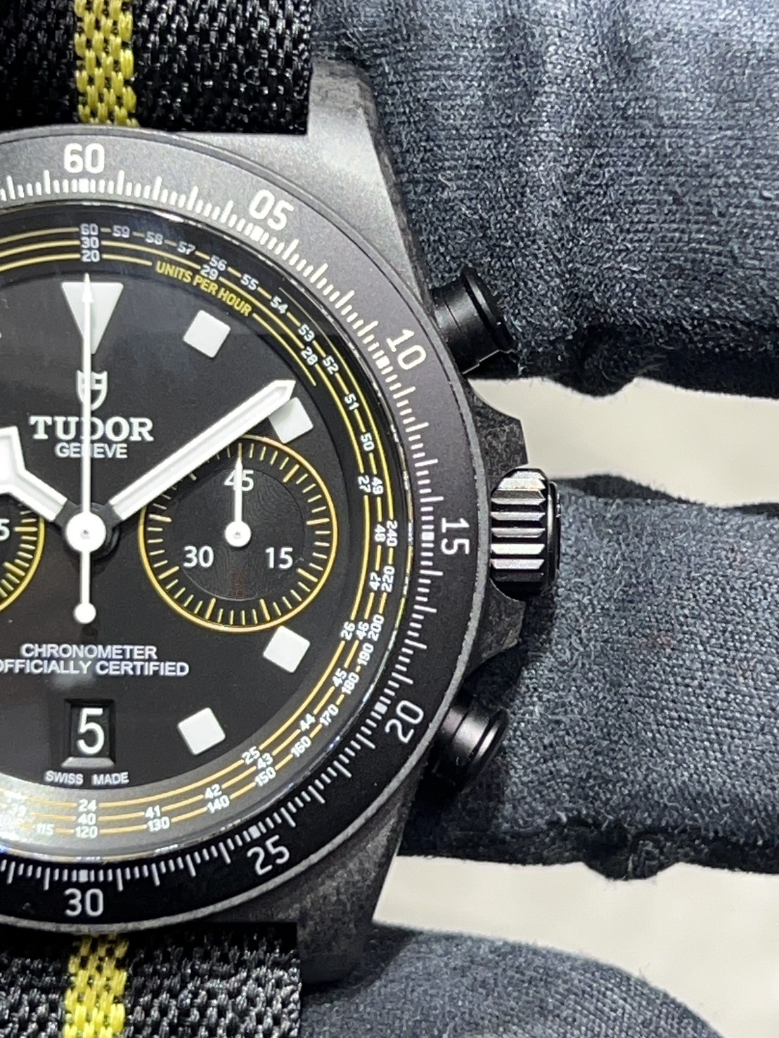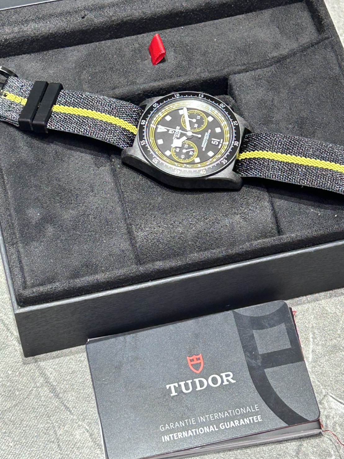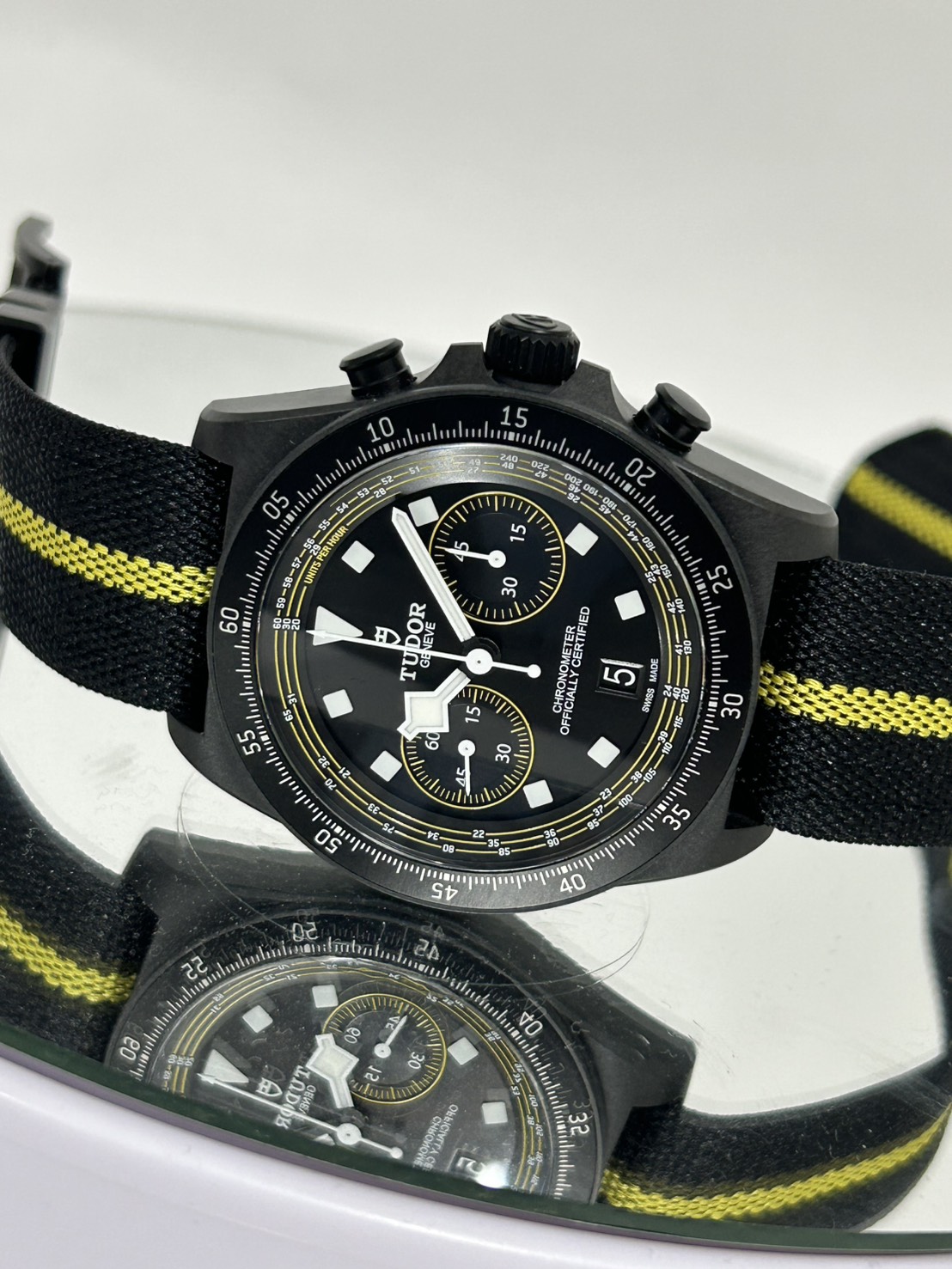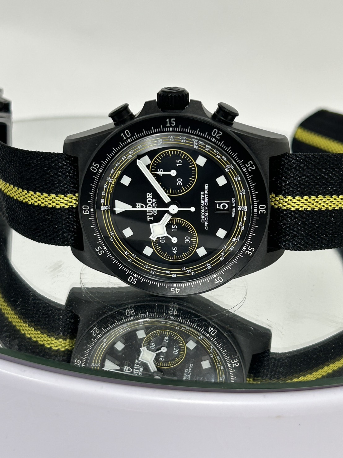 世界限定300本、2025年に発売されたチューダーの限定クロノグラフモデルで、元プロサイクリストのファビアン・カンチェラーラ(Fabian Cancellara)を称えるイエローアクセントが特徴で、Maillot Jaune(イエロージャージ)がイメージされたモデルでございます。