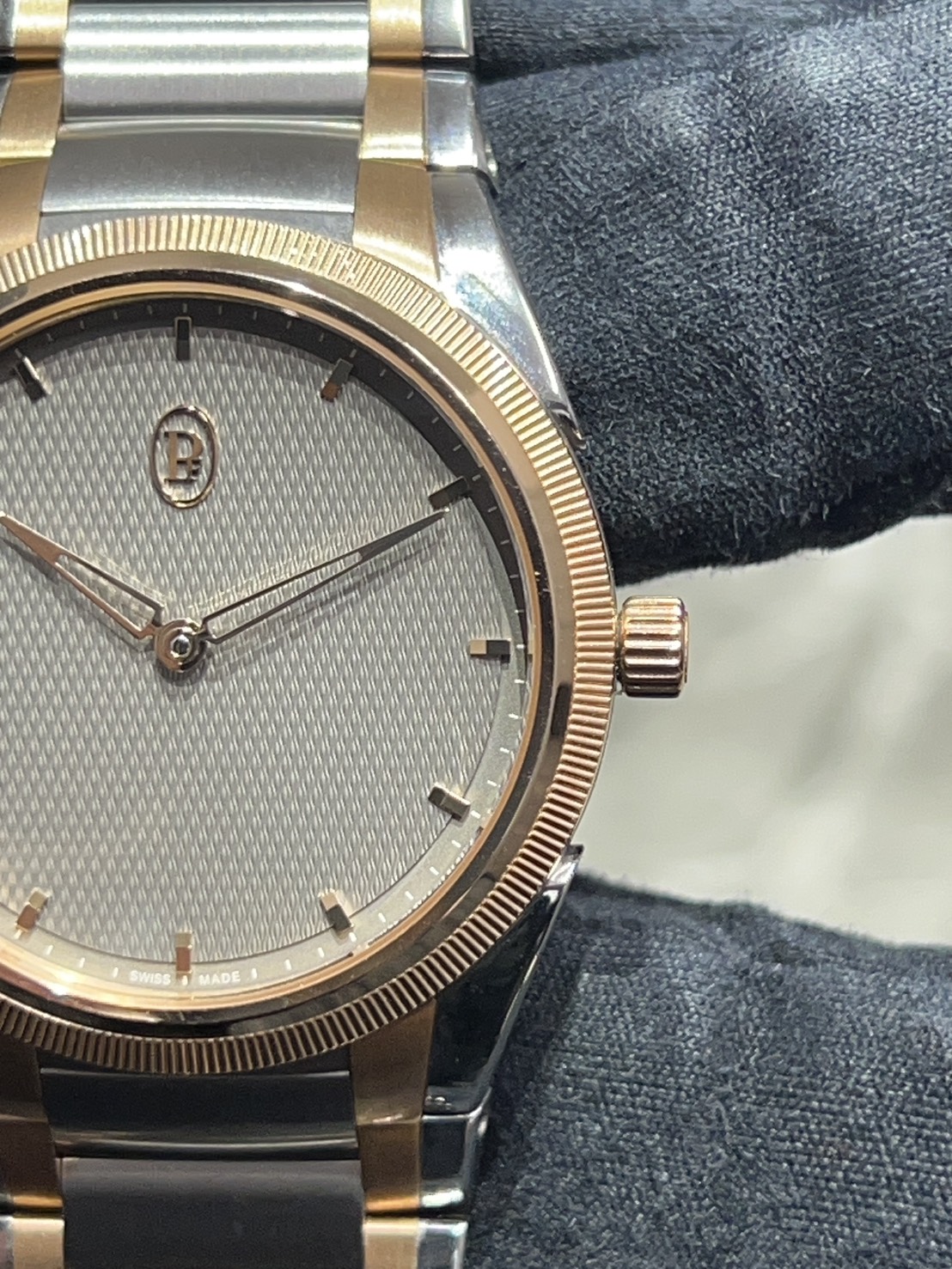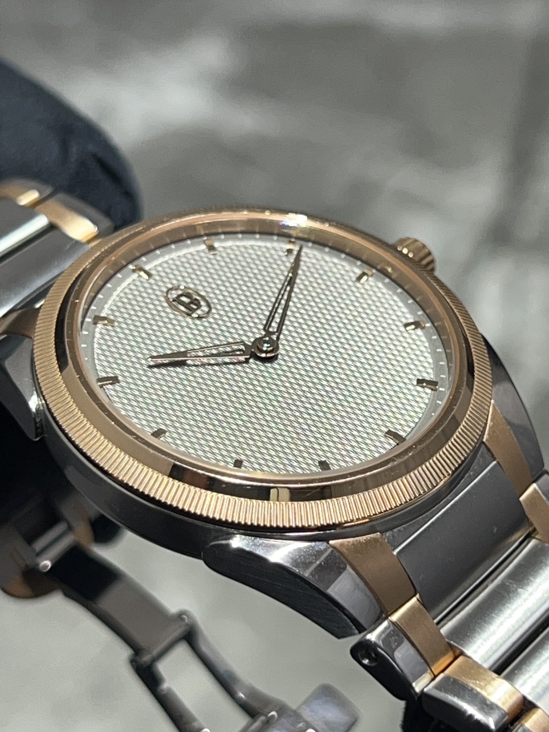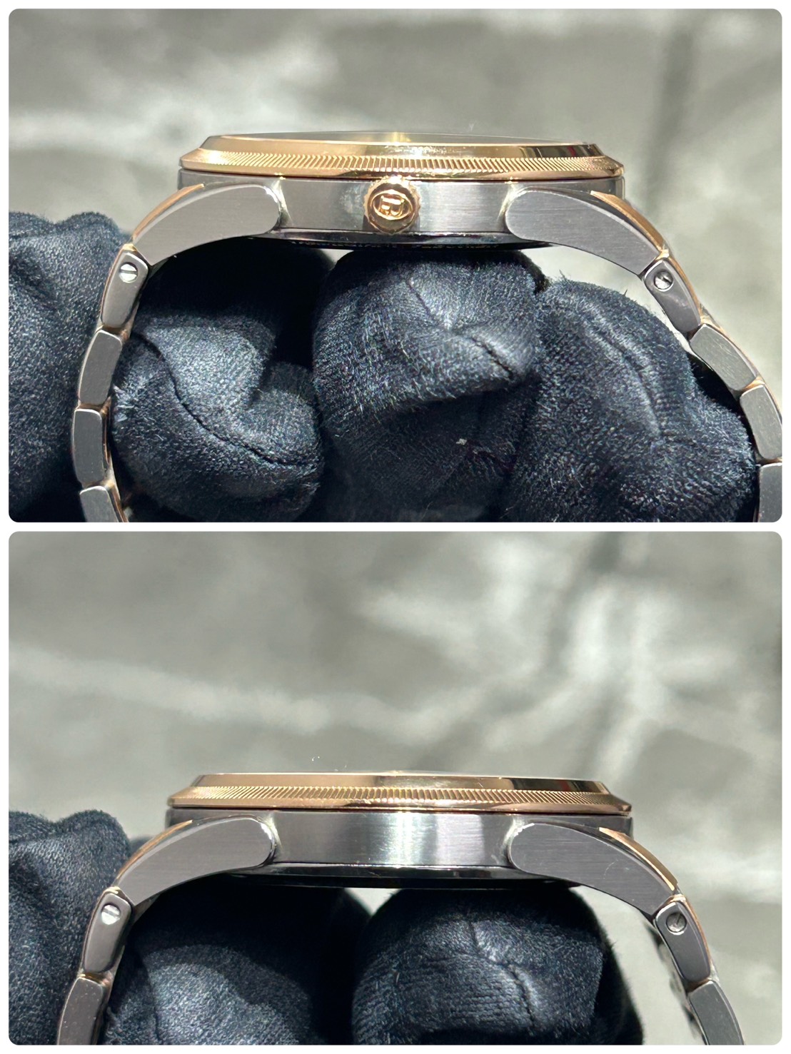 推しポイントとしてステンレスとローズゴールドのツートーンケース&ブレスモデルですので主張し過ぎず日常使いから少しフォーマルなシーンまでご愛用頂けます。