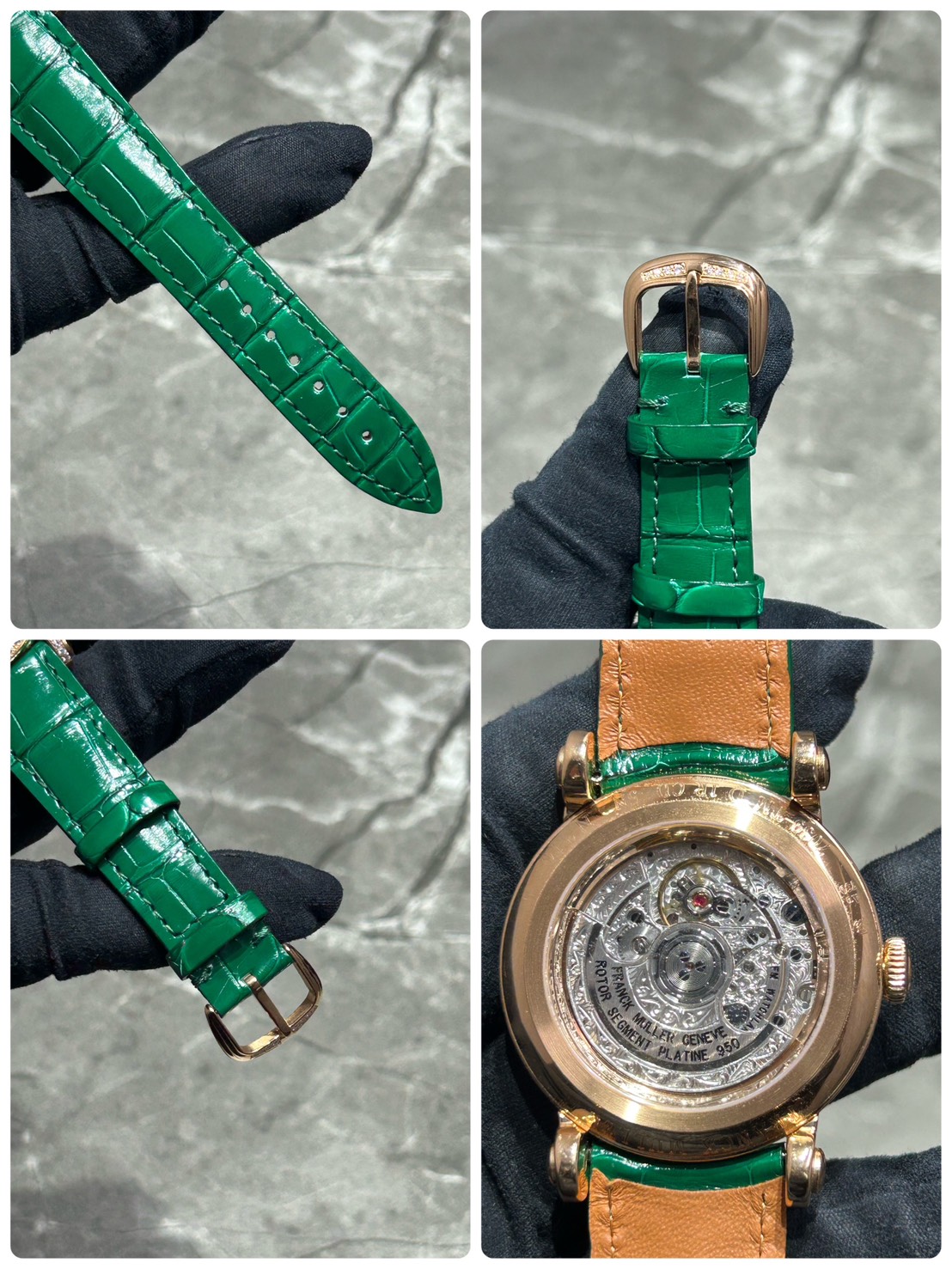 裏蓋からは美しい装飾が施されたMVD 2800(FM800をバージョンアップしたムーブ)がご覧頂け、表から見る派手さと裏蓋から見る装飾で大変芸術的なモデルとなっております(ローターもなんとプラチナ製です)
