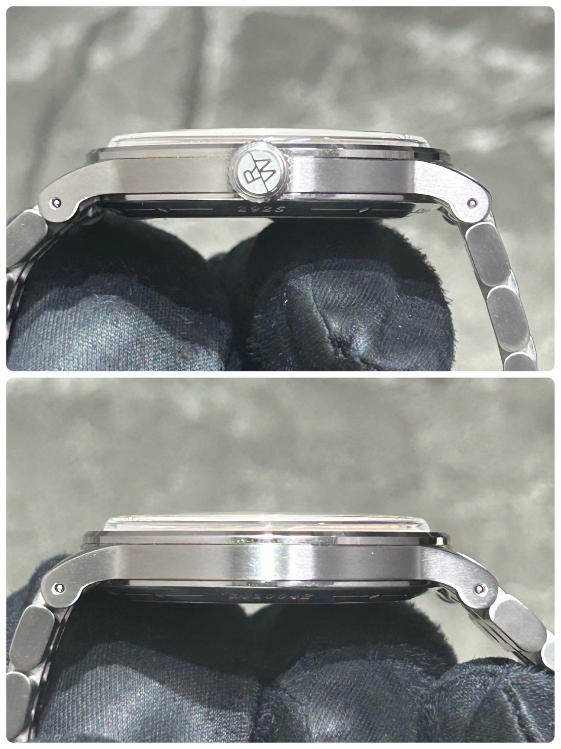 ケースは39.5㎜と絶妙なサイズ感で厚さ9.25㎜と薄めで5連リンクのブレスでドレスウォッチなのに少しカジュアルにも寄せやすいのが嬉しいポイントでございます。