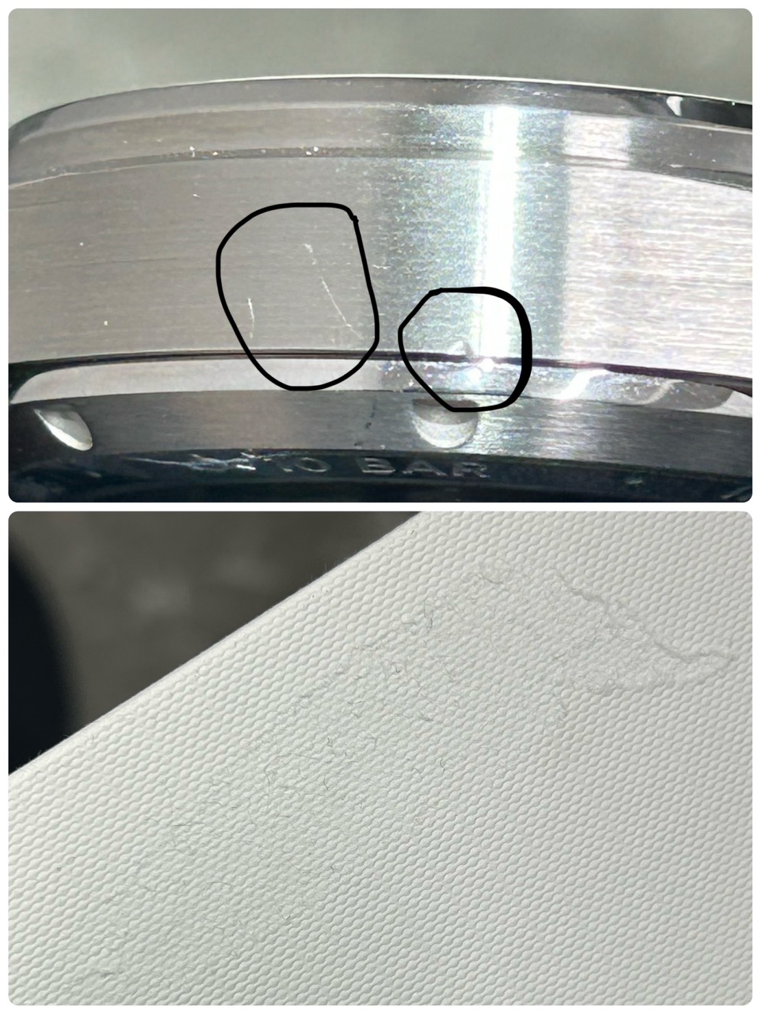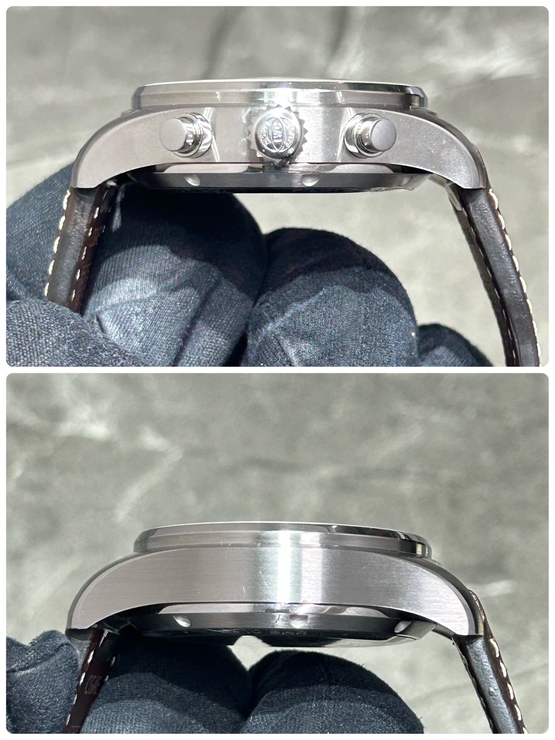 未使用での持ち込みでしたので使用感の感じない個体になりますが、2時側ベゼルと9時側ケースサイド角に極小打痕がございます。