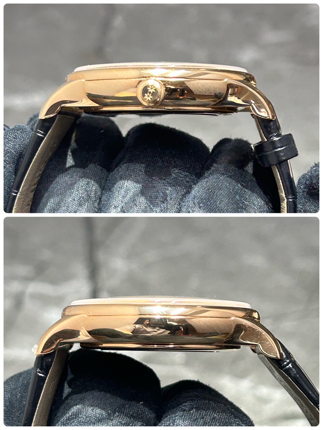 また、現在装着されているアリゲーターストラップは若干の使用感はございますが目立つダメージがなくまだまだご愛用頂けるコンディションとなっております。