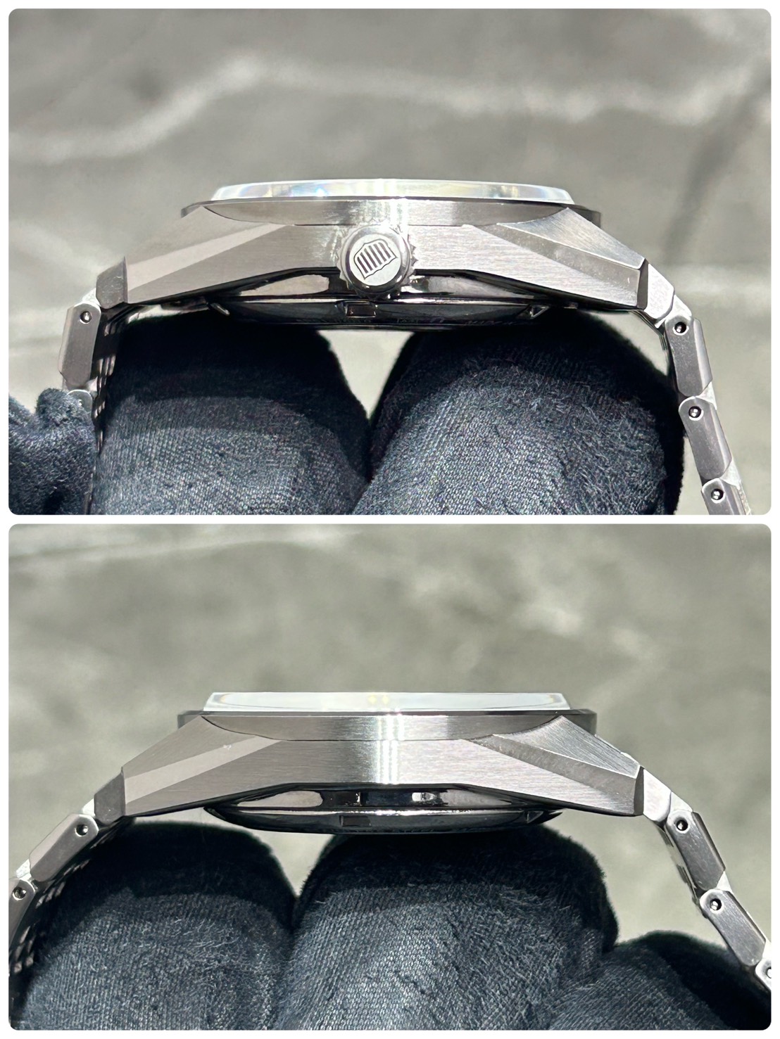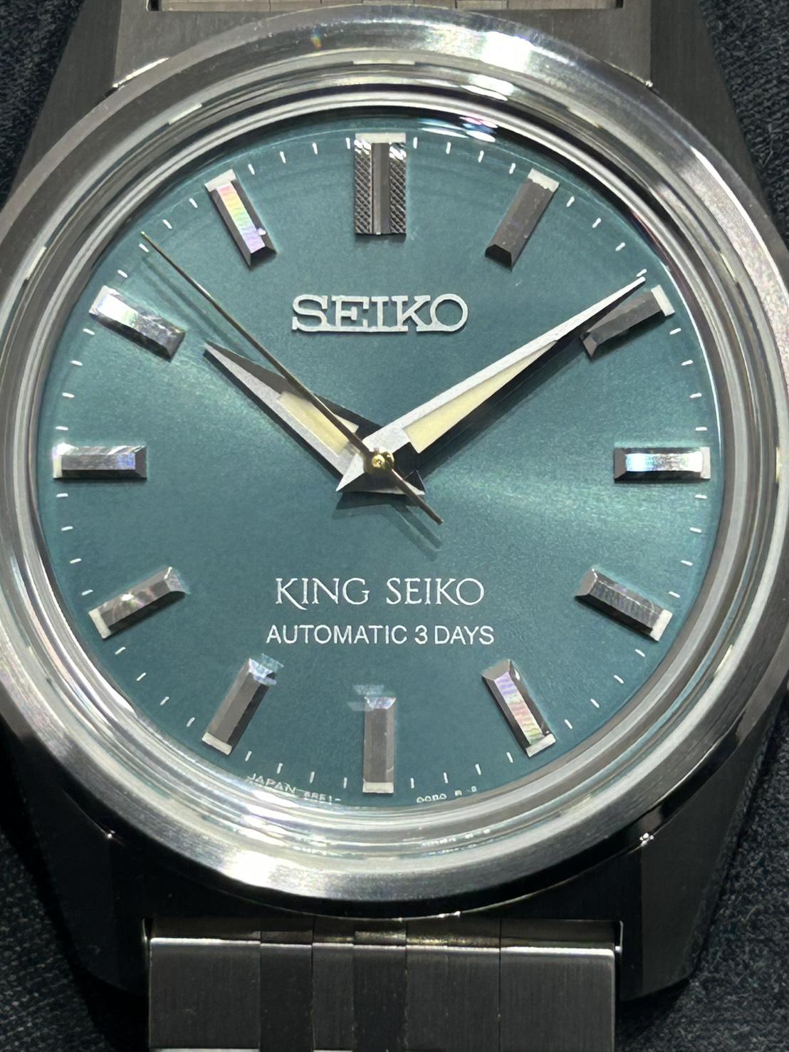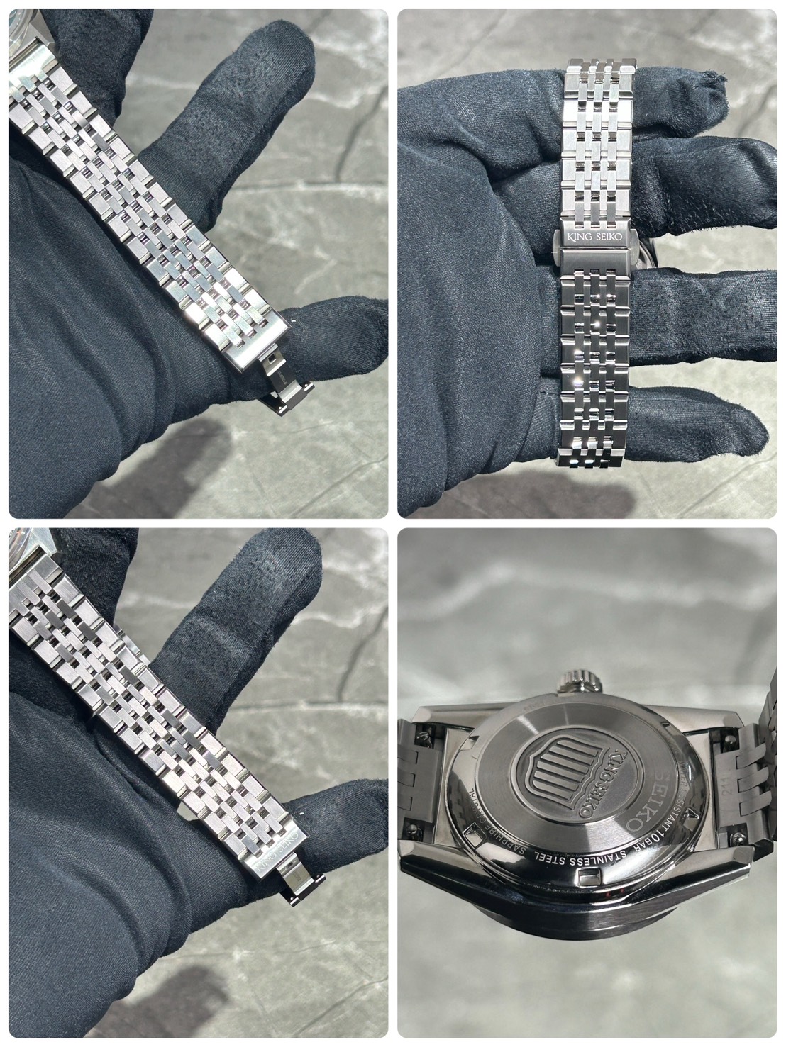 ケースデザインは、ボックス型サファイアガラスにシャープなケースライン、エッジのきいたラグデザインなど当時のキングセイコーを忠実に再現したフォルムになっております。