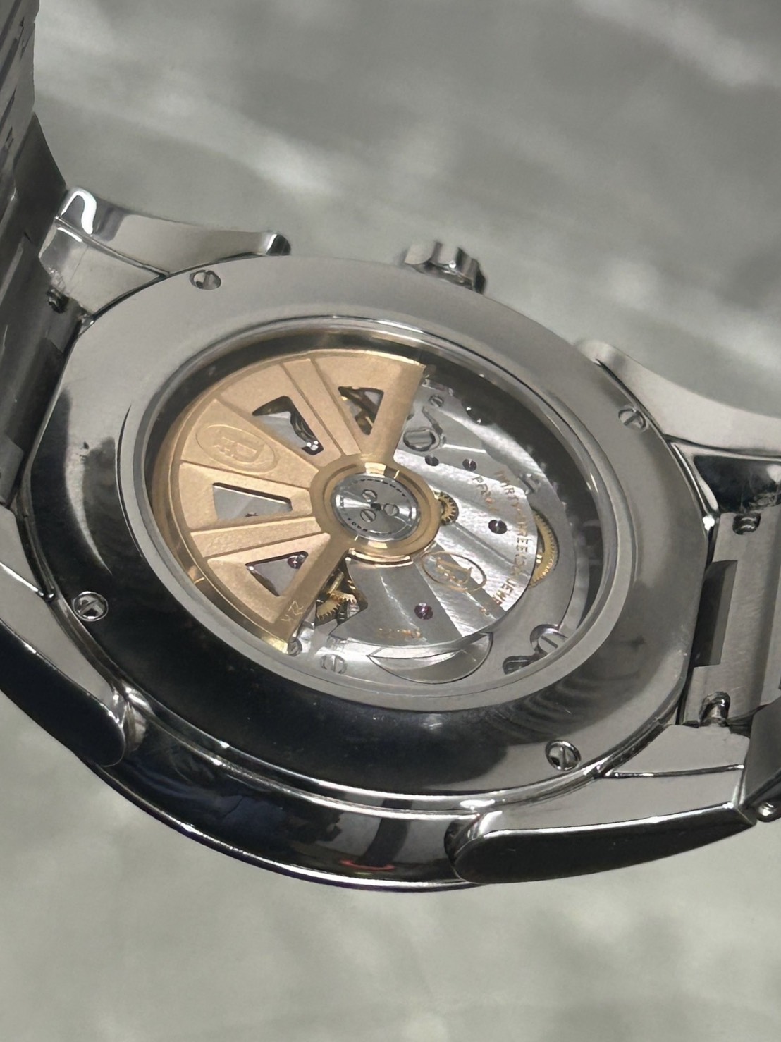 ケースバックからは自社製自動巻きキャリバーPF044を鑑賞する事ができ美しい仕上げをご覧頂けます。