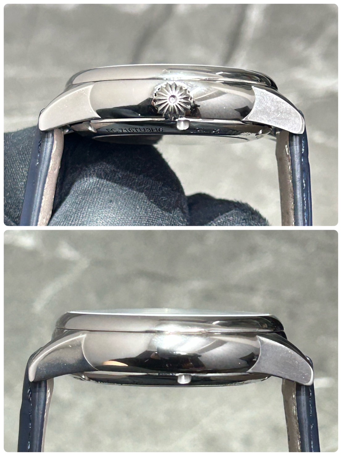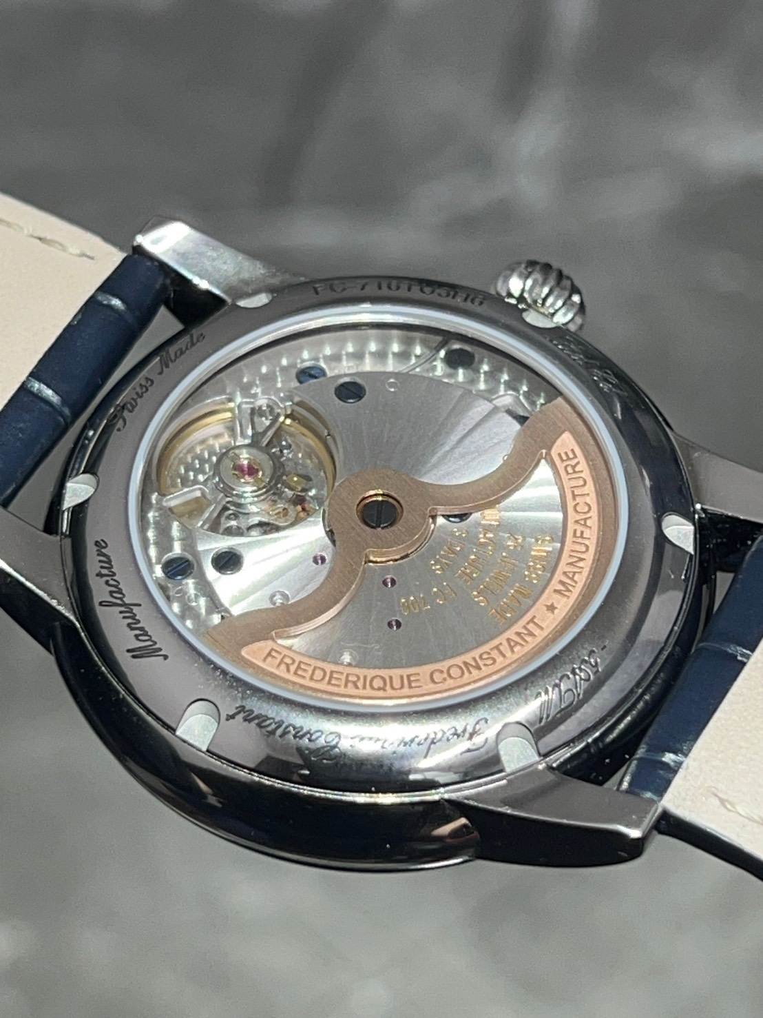 裏蓋からは、自社開発キャリバーFC‐716 を鑑賞する事ができ自動巻き、72時間パワーリザーブと高スペックになっております。