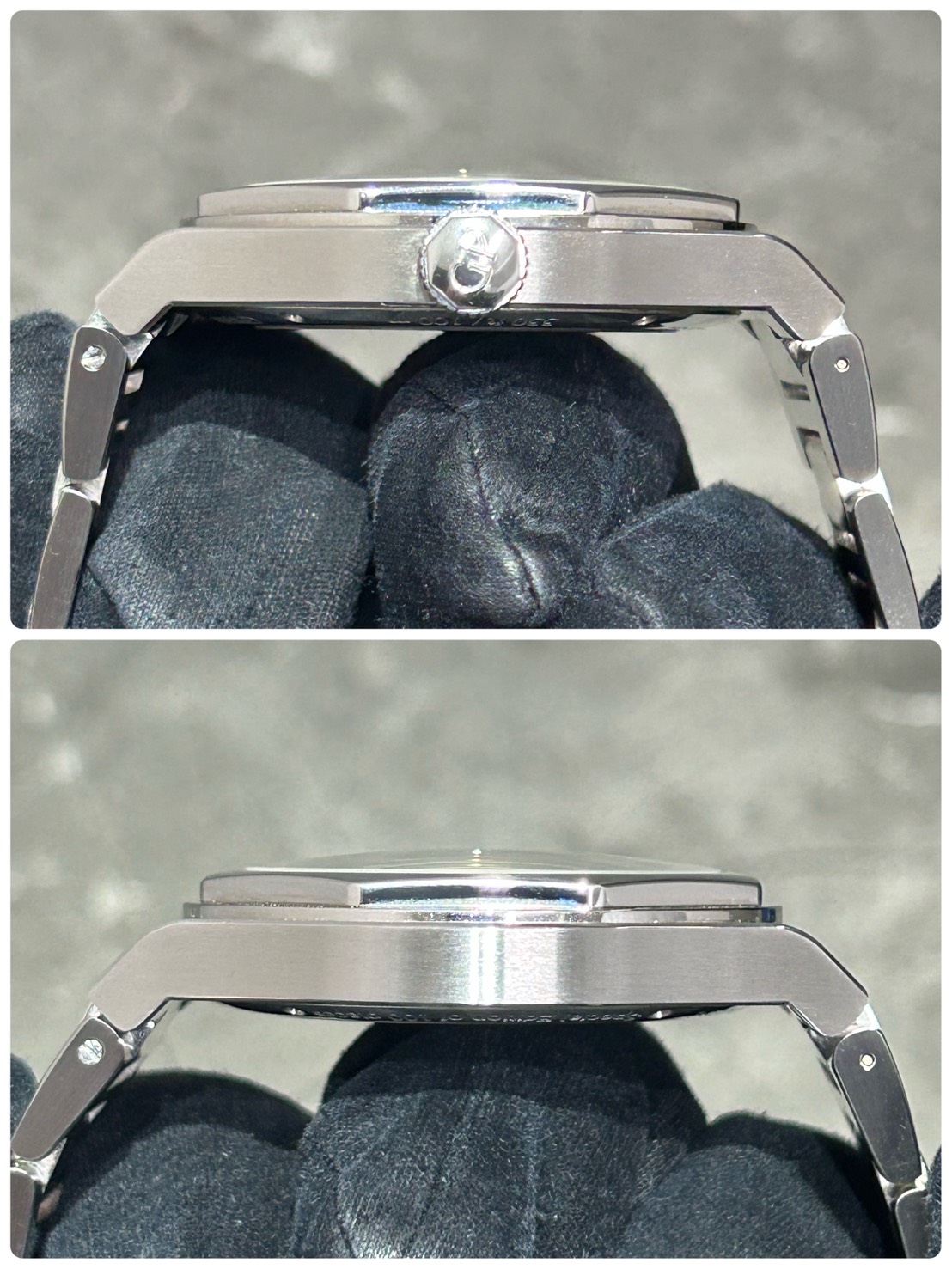 こちらは同ブランドの代表作である大聖堂の天蓋がモチーフとなっている円形と八角形を組み合わせたベゼルに藍色のエナメル文字盤が備わった特徴的なモデルでございます。
