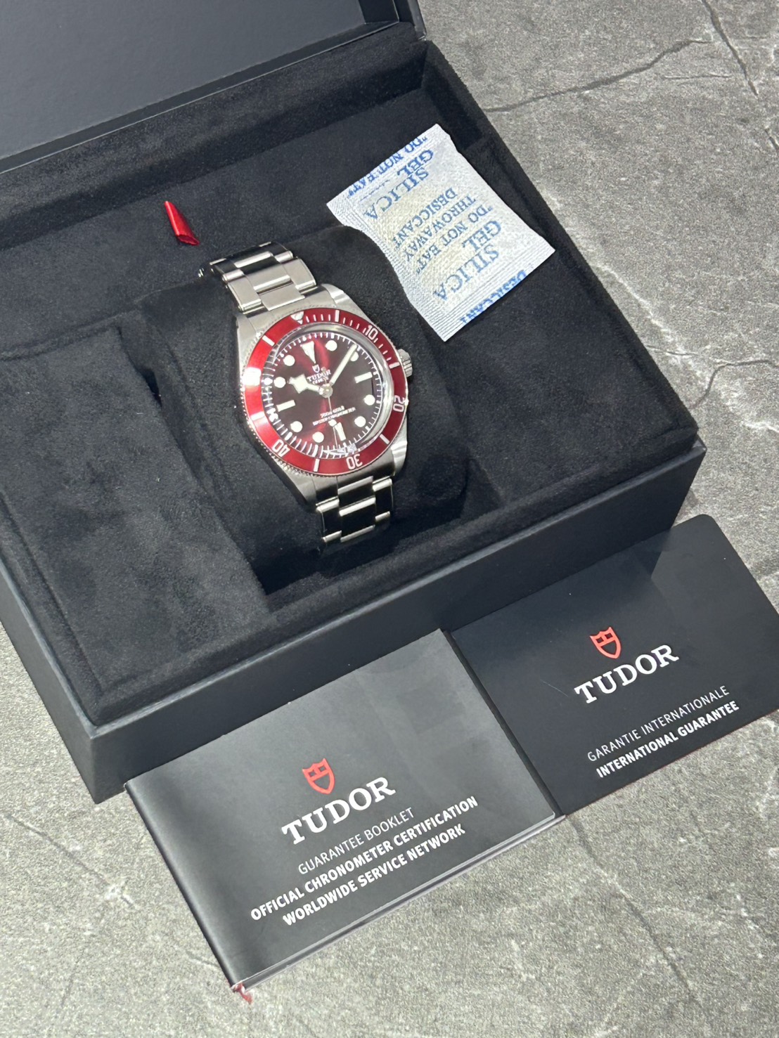 鮮やかなバーガンディにベゼルが目を引く2025年新作のブラックベイが入荷致しました。