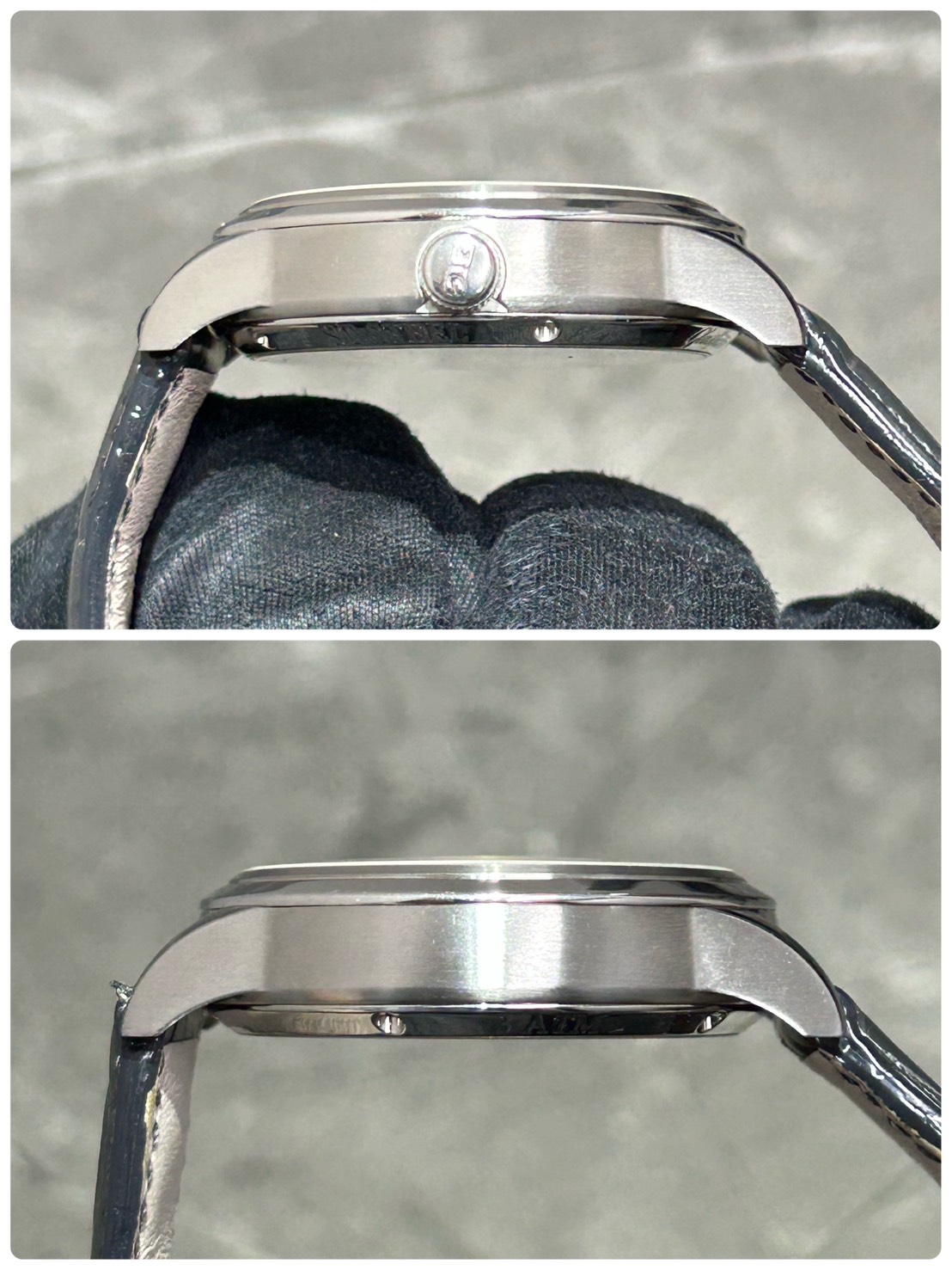 ケース径39㎜という洗練されたサイズと装着感にストラップとの組み合わせが上品さを引き立て、中古市場でも人気のモデルでございます。